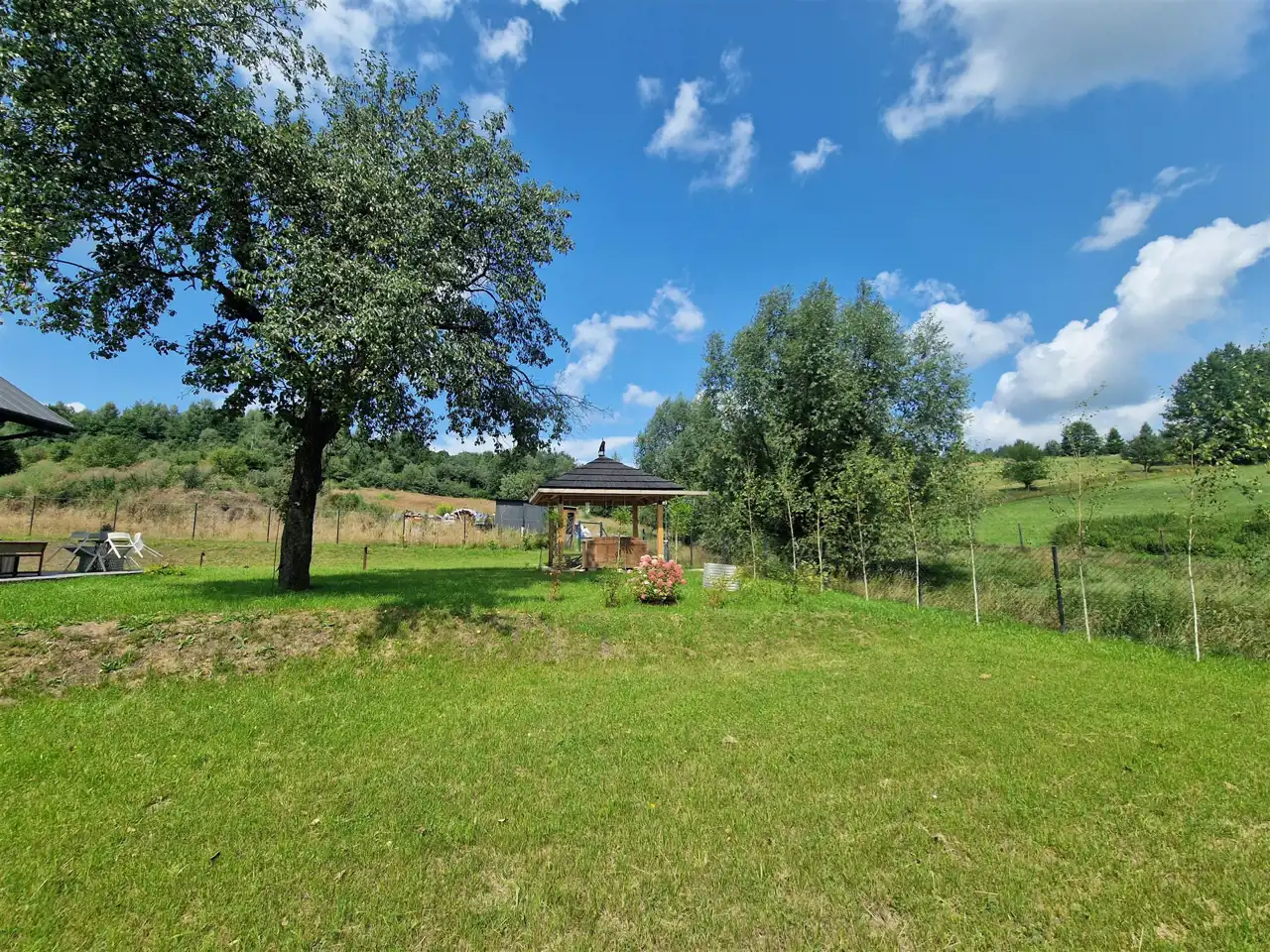 - Działka Zagospodarowana, lekko nachylona, kwadrat