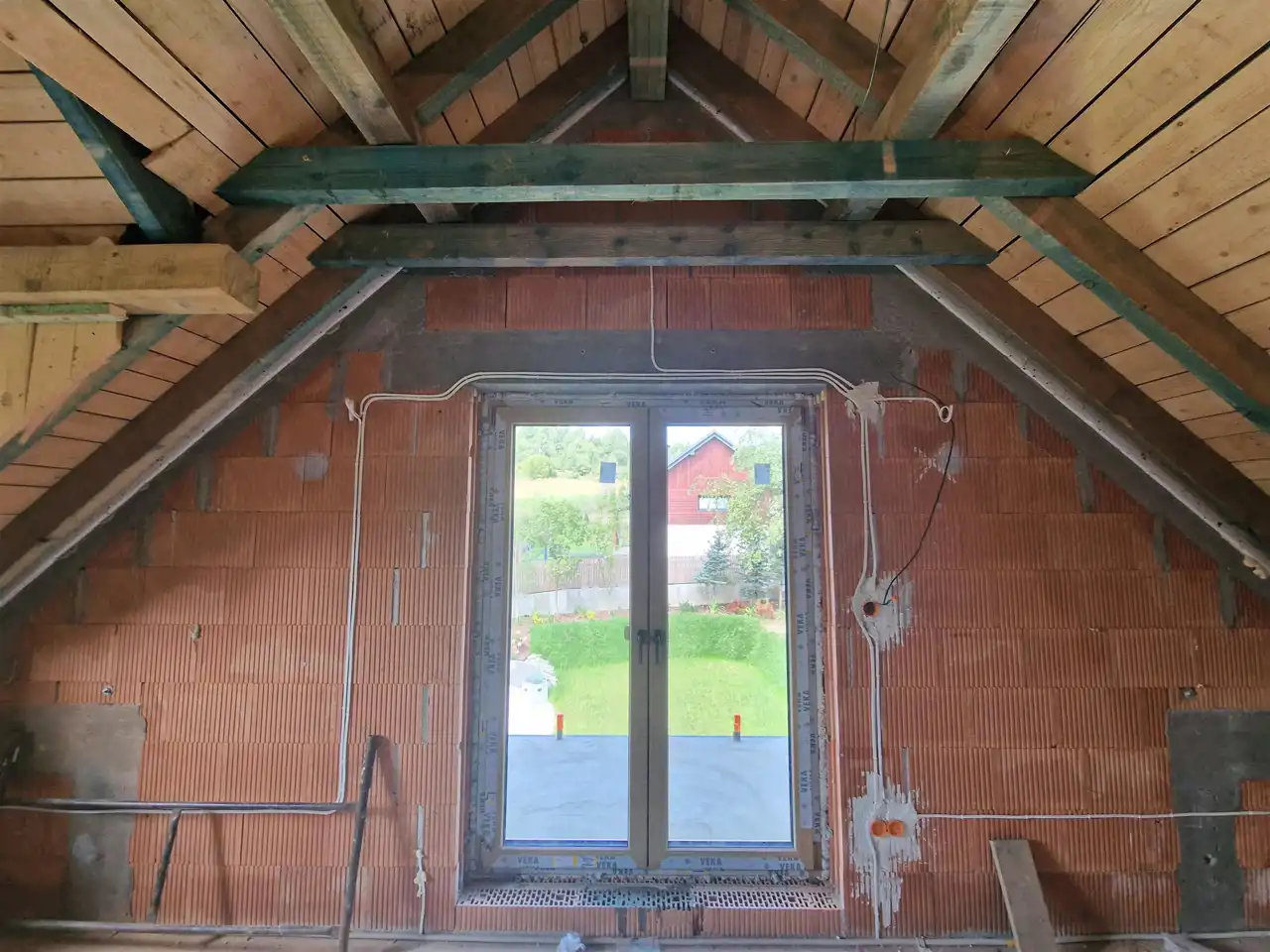 - Wykonanie nowych podłóg w całym domu + montaż drzwi wewnętrznych. Nowe drzwi wejściowe do domu antywłamaniowe.
