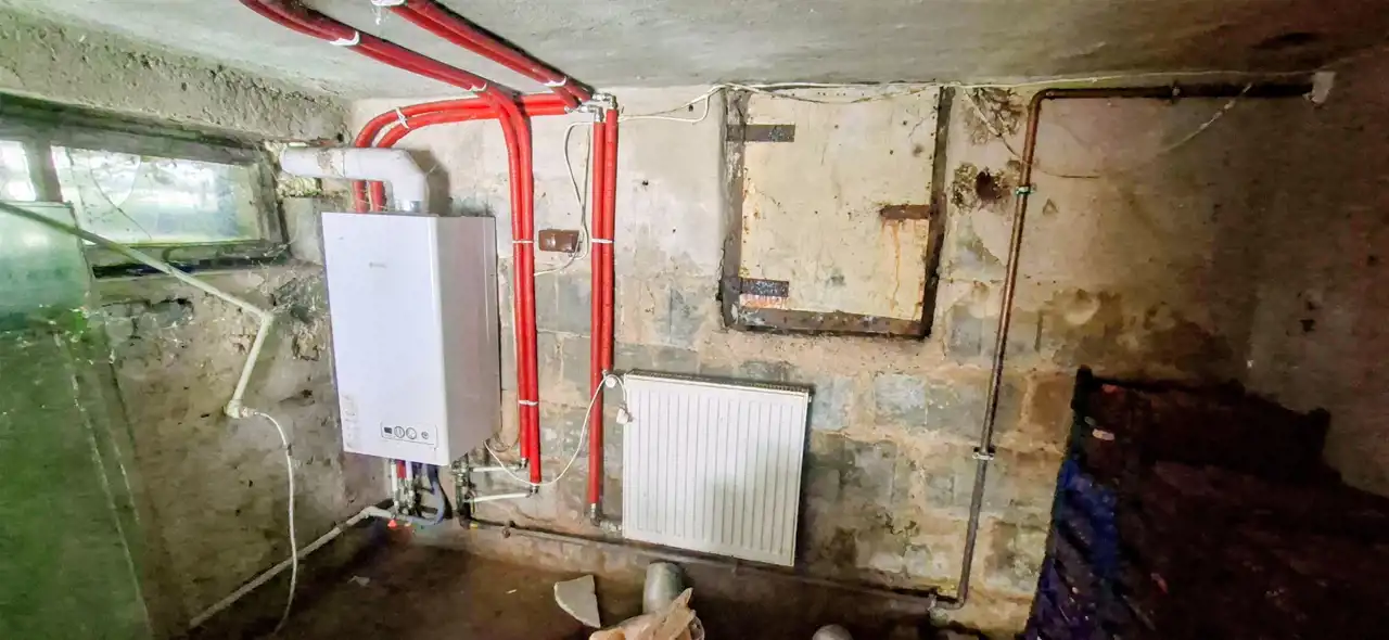 - Media Ogrzewanie: C.O. miejskie; Woda: piec gazowy dwufunkcyjny; Kanalizacja: szambo; Prąd: w budynku; Gaz: tak - miejski