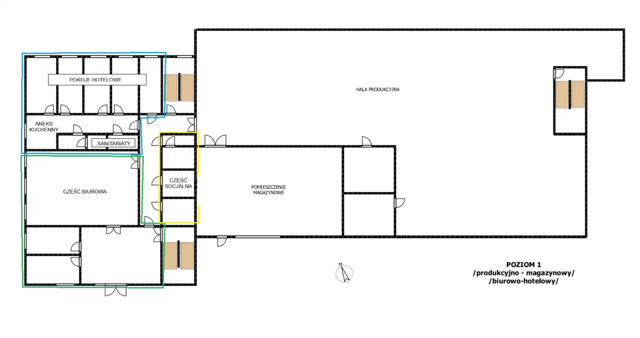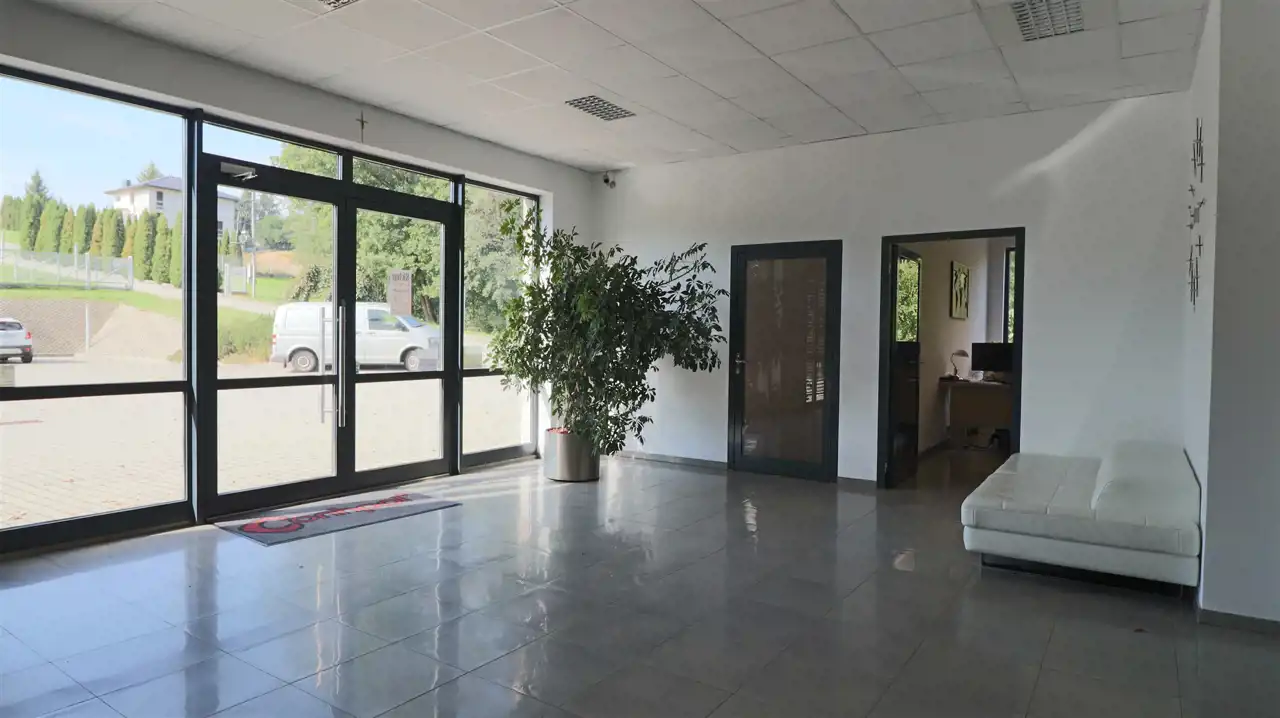 Hala znajduje się w budynku 2 kondygnacyjnym o łącznej powierzchni użytkowej 2951 m2, wybudowany w 2010 r., urządzony w wysokim standardzie, usytuowany na ogrodzonej działce o pow. 1,4048 ha z bezpośrednim zjazdem z drogi publicznej. Działka utwardzona kostką brukową na pow. ok. 5000 m2. W skład budynku wchodzą 2 hale produkcyjno-usługowe o pow. po 865 m2 każda. Hale usytuowane są na 1 i 2 kondygnacji. Każda posiada bramę wjazdową (3,2 m x 3,1 m). Wysokość hal od 3,5m do 4,5 m. Możliwy także wynajem powierzchni biurowych, które znajdują się na 3 kondygnacjach zawierajacych powierzchnię biurowo-magazynowo-socjalną o pow. 407 m2 każda. Łączna pow. pomieszczeń biurowych wynosi ok. 600 m2, ogółem 11 pomieszczeń (sale konferencyjne, gabinety, sekretariat), 5 pomieszczeń socjalnych i 6 pomieszczeń sanitarnych. Na pozostałej powierzchni znajduje się obecnie 5 pokoi mieszkalnych po 18 m2 każdy, z zapleczem socjalnym i sanitarnym.