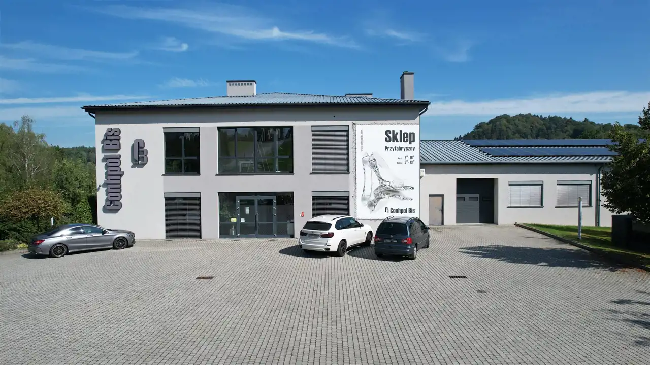 Budynek wybudowany w technologii tradycyjnej, murowany, ocieplony styropianem, okna PCV i aluminium. Ogrzewanie gazowe, w halach nadmuchowe, w pozostałych pomieszczeniach, podłogowe i grzejniki. Podłogi: gres. Budynek klimatyzowany, wentylacja mechaniczna i grawitacyjna, fotowoltaika, alarm, monitoring.
