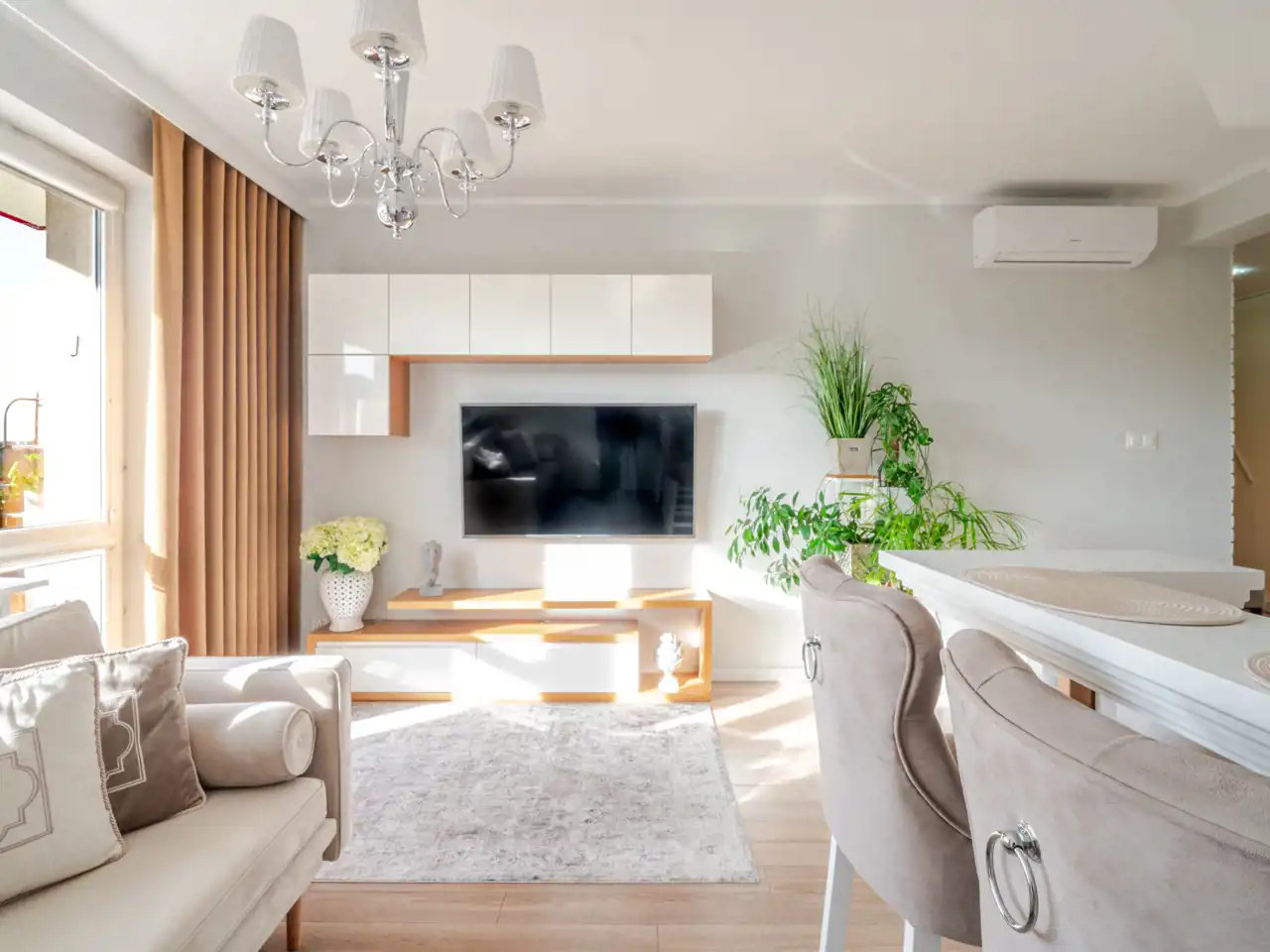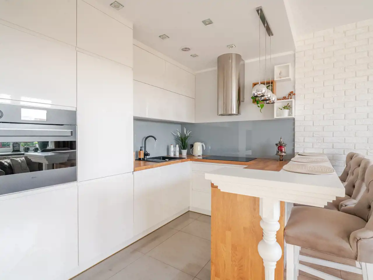 nowoczesna, w pełni wyposażona kuchnia połączona z jasnym salonem – idealna przestrzeń dzienna,