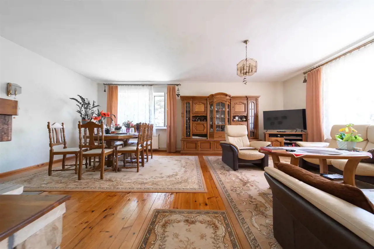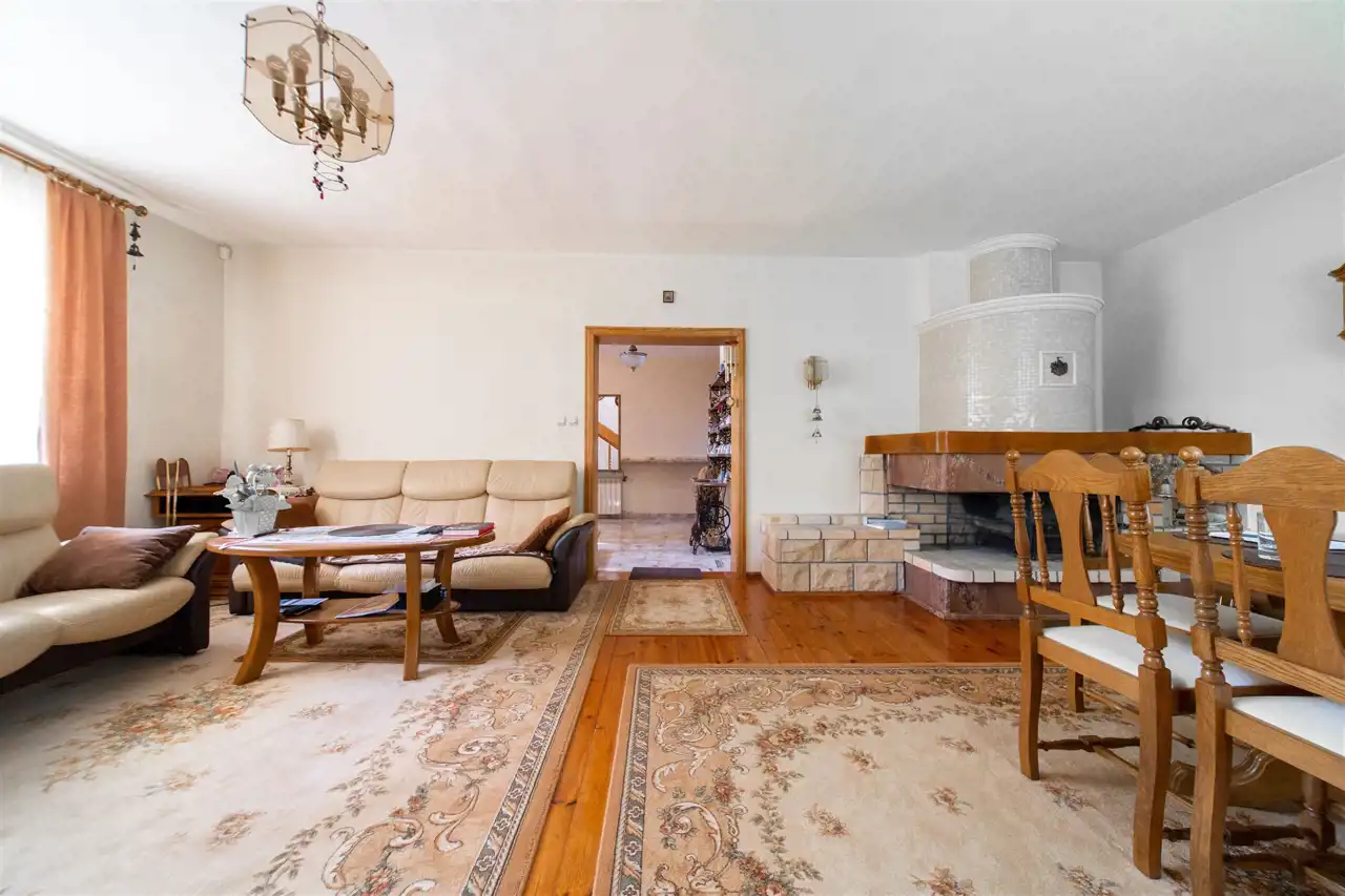 Nieruchomość oferuje ogromne poczucie przestrzeni, a pokoje są duże i ustawne. Dom jest w pełni rozkładowy - dostęp do każdego pokoju odbywa się z korytarza i żaden z pokoi nie jest pokojem przejściowym. W salonie kominek.