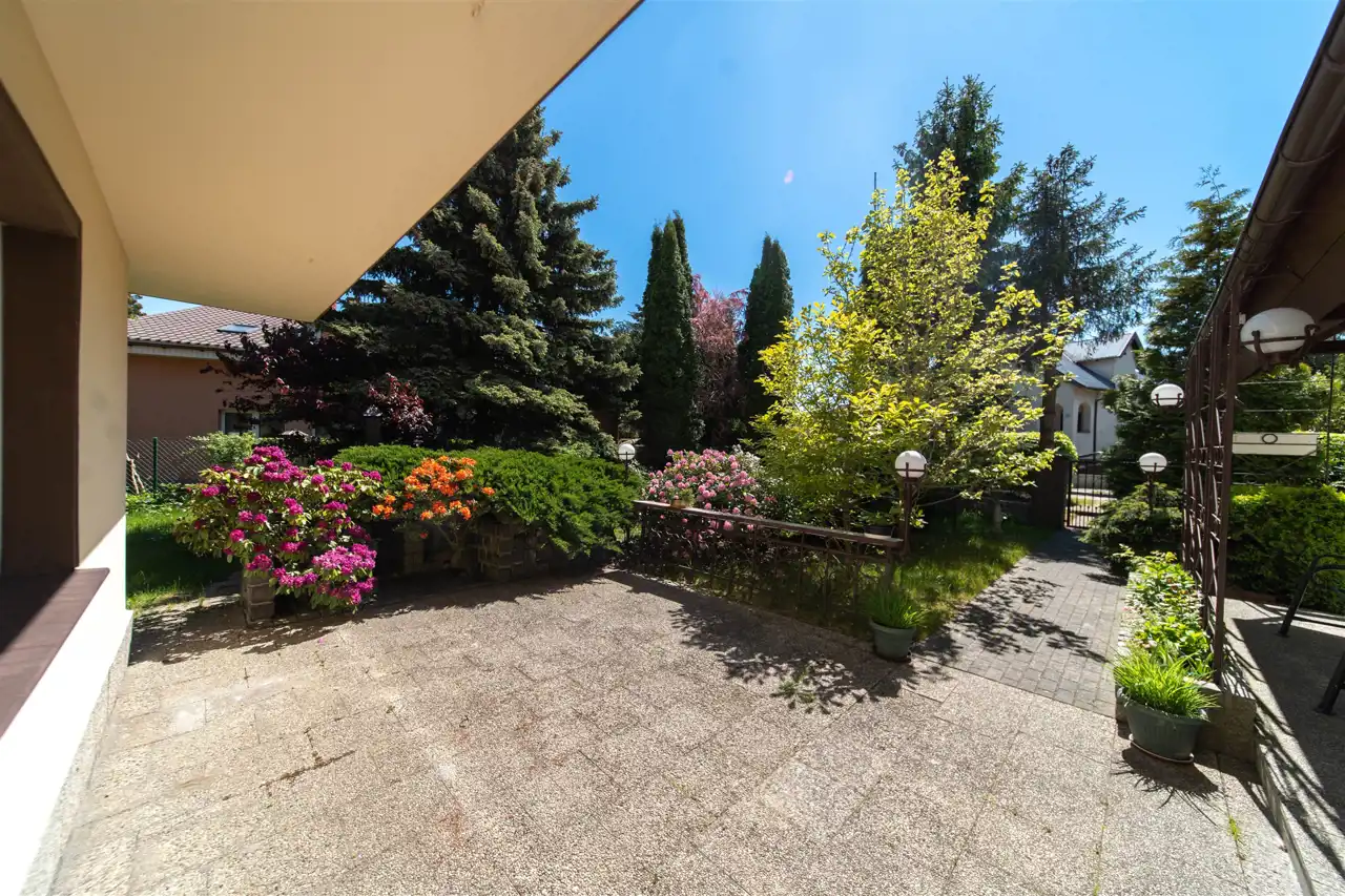 Działka, na której znajduje się dom ma powierzchnie 691 m2 o płaskim podłożu oraz prostokątnym kształcie. Zagospodarowany ogród z licznymi nasadzeniami oraz drzewostanem. W ogrodzie znajduje się drewutnia z pomieszczeniem gospodarczym, wędzarnia. Na działce wkopano zbiornik na deszczówkę.