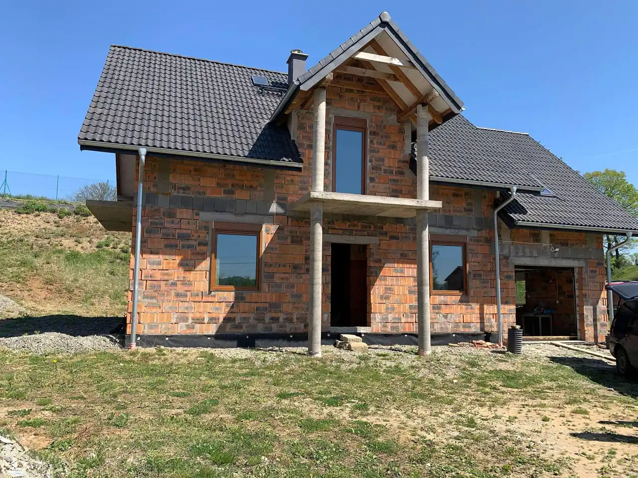 Dom w stanie surowym zamkniętym, wykonany z wysokiej jakości materiałów, z solidnymi fundamentami, stolarką okienną i drzwiową.