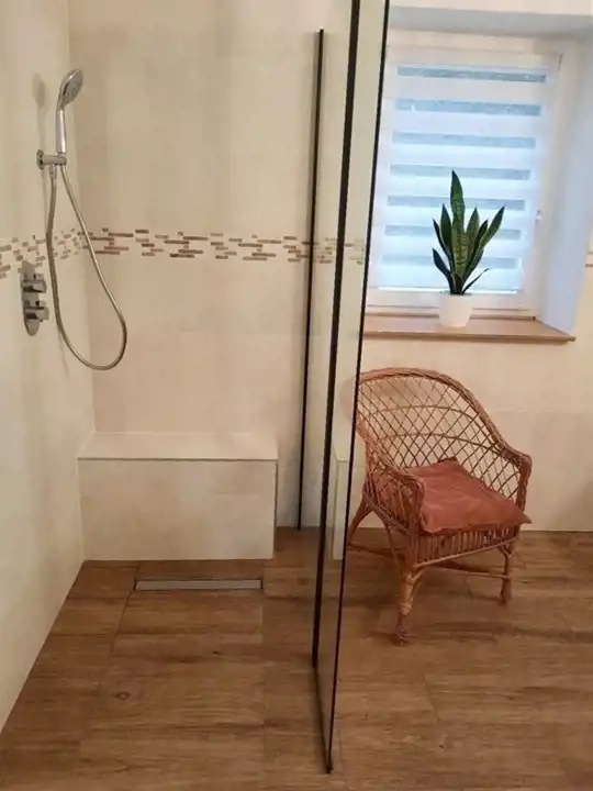 Kotłownia z nowoczesnym bezobsługowym piecem na pellet, istnieje możliwość zmiany ogrzewania na gazowe. Zbiornik 250l na ciepłą wodę i pomieszczeniem na opał.