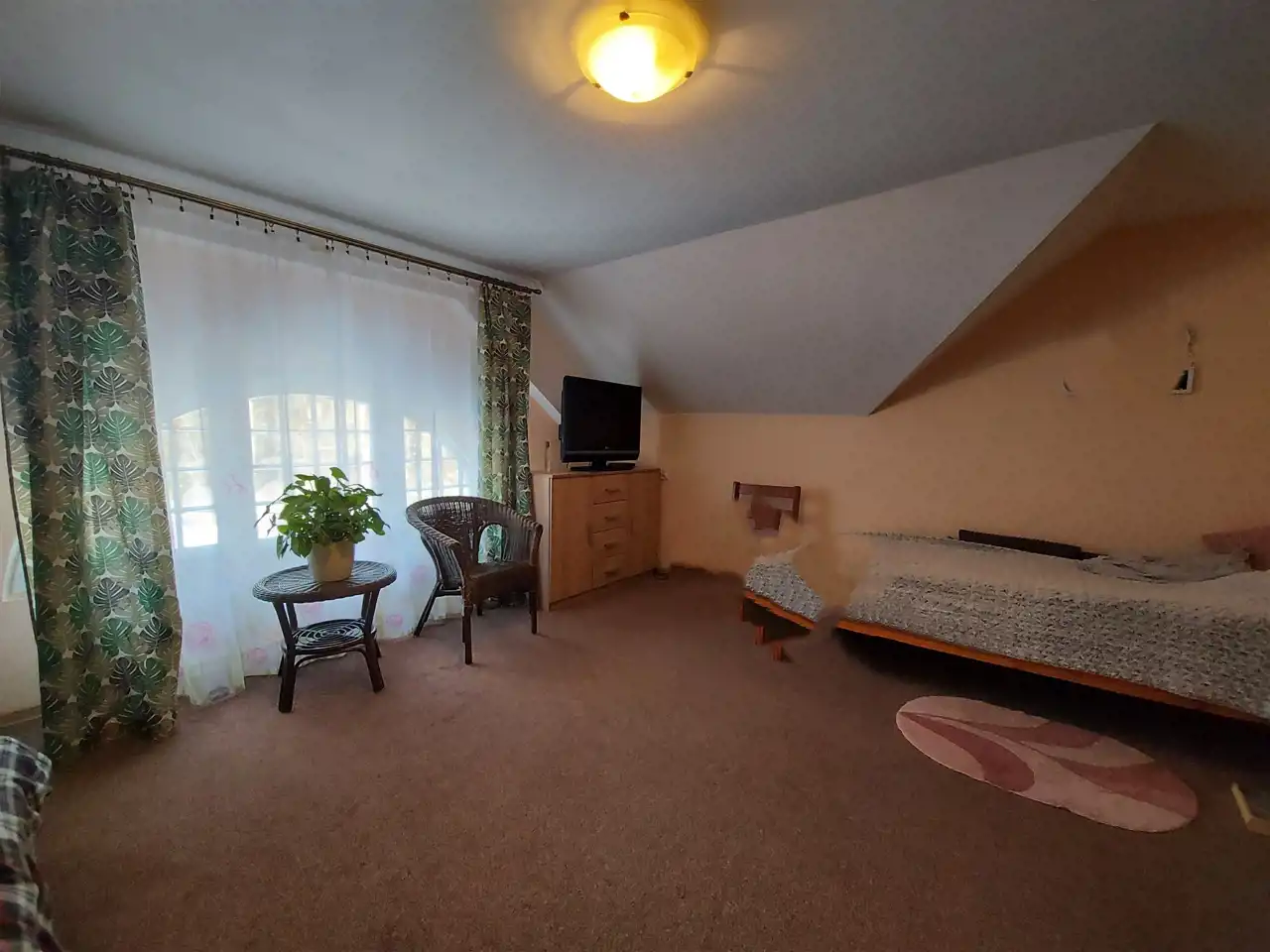 dla gości 7 – 15 miejsc- w pokojach 2-3- osob. , każdy pokój z łazienką