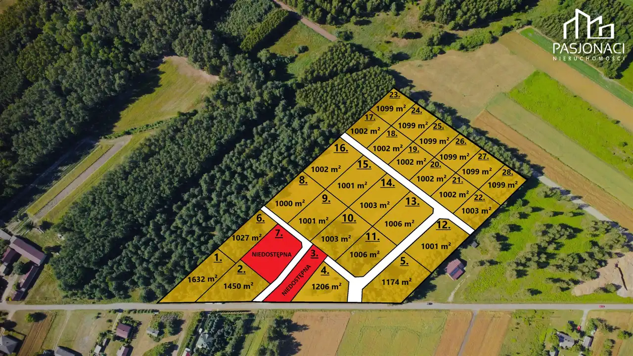 • Procedura podziału zakończona – powstało 28 działek budowlano - usługowych o powierzchniach od 10 do 16 arów