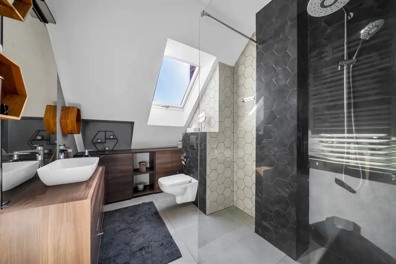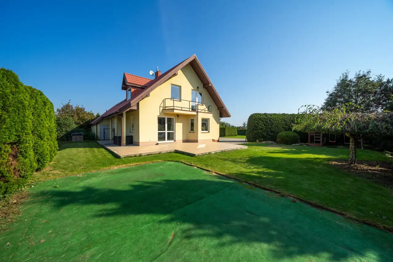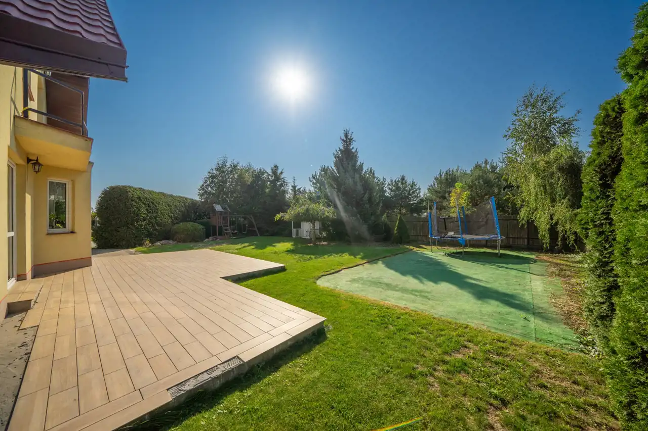 Przedstawiamy przestronny dom wolnostojący o powierzchni użytkowej 241 m² – idealny dla większej rodziny lub osób ceniących komfort, ciszę i szybki dojazd do stolicy (zaledwie 40 minut od Warszawy). Nieruchomość położona jest na pięknej, zadbanej działce o powierzchni 1520 m², otoczonej zielenią, gwarantującej pełną prywatność. Dom wyróżnia się nowoczesnymi rozwiązaniami technologicznymi, dużą przestrzenią, wysoką estetyką wykończenia oraz doskonałą infrastrukturą. Duży podjazd na 8 samochodów, zadbany ogród z licznymi nasadzeniami oraz wysokiej jakości materiały użyte przy budowie czynią tę ofertę wyjątkową.
