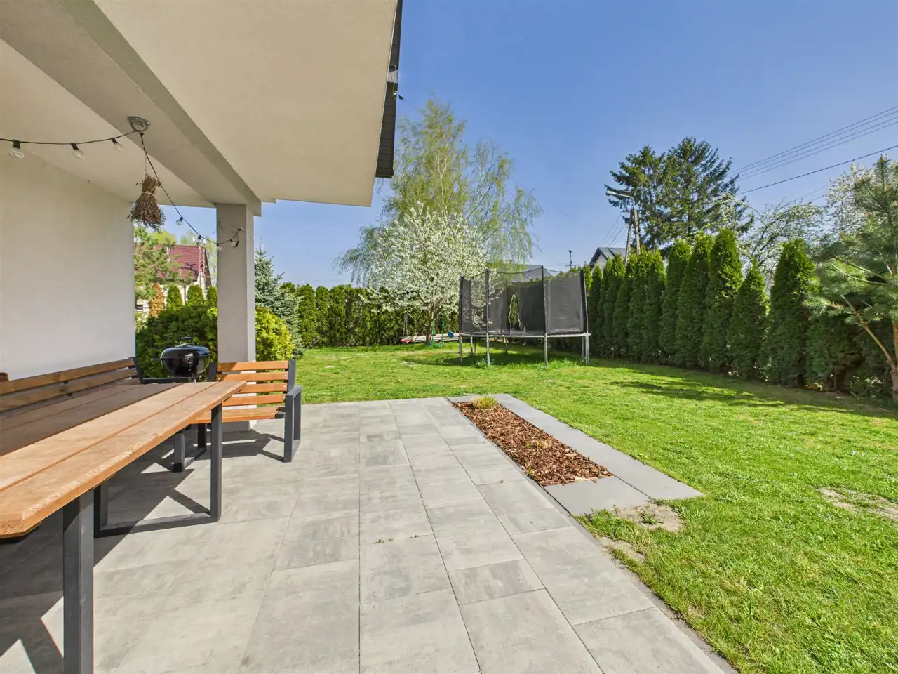 Z salonu wyjście na przestronny taras, z którego wyjdziemy do ogrodu.