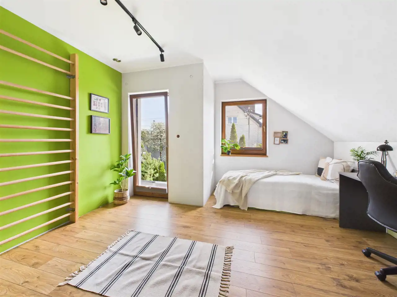 - Sypialnia z wyjściem na balkon;