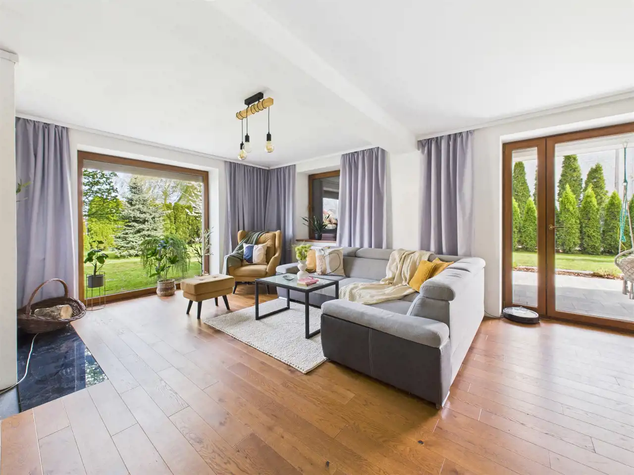 - Przestronny salon z kominkiem;