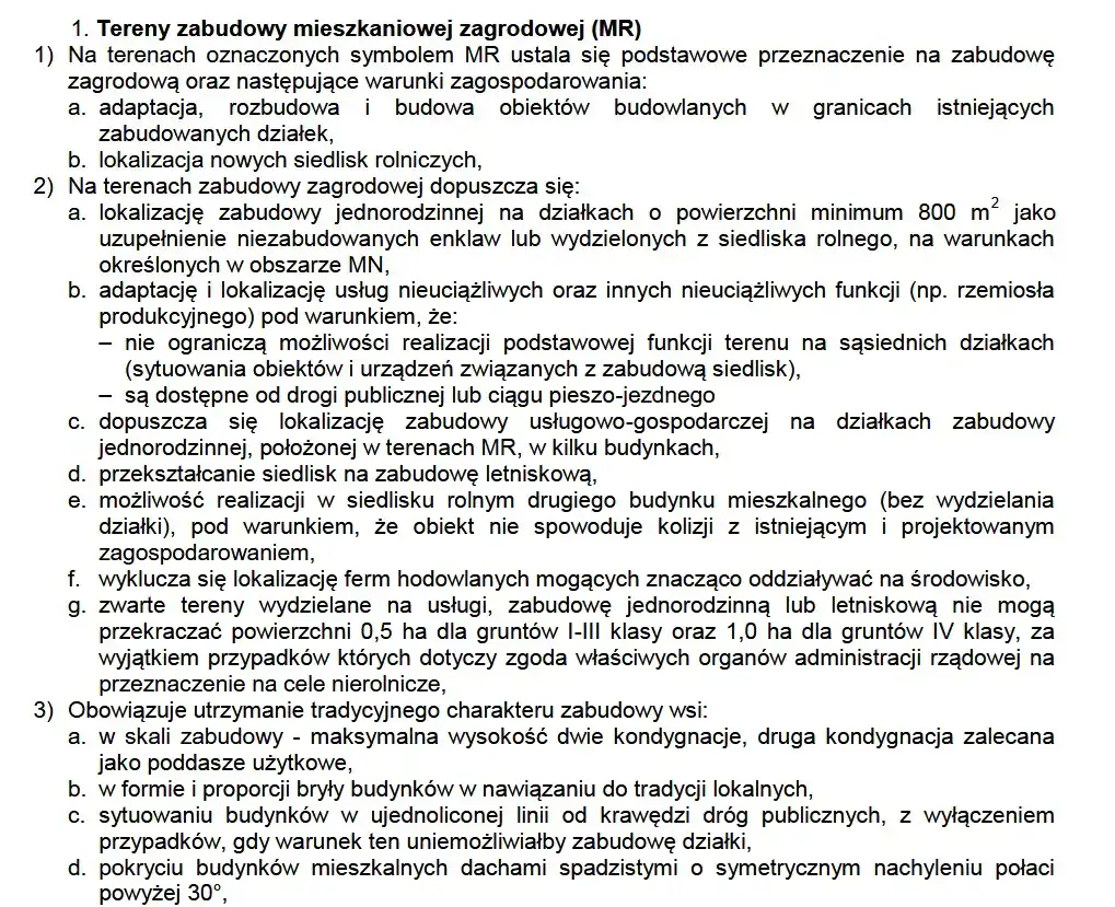 Tereny zabudowy mieszkaniowej zagrodowej MR: