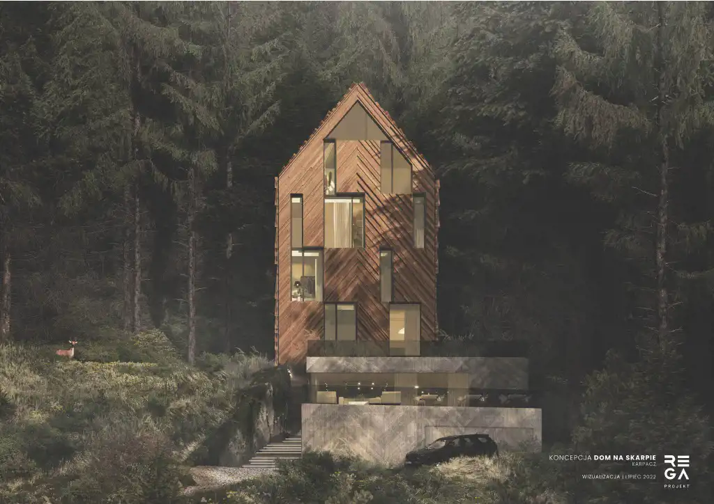 „DOM NA SKARPIE” - nowoczesna koncepcja nawiązująca do lokalnej architektury karkonoskiej.