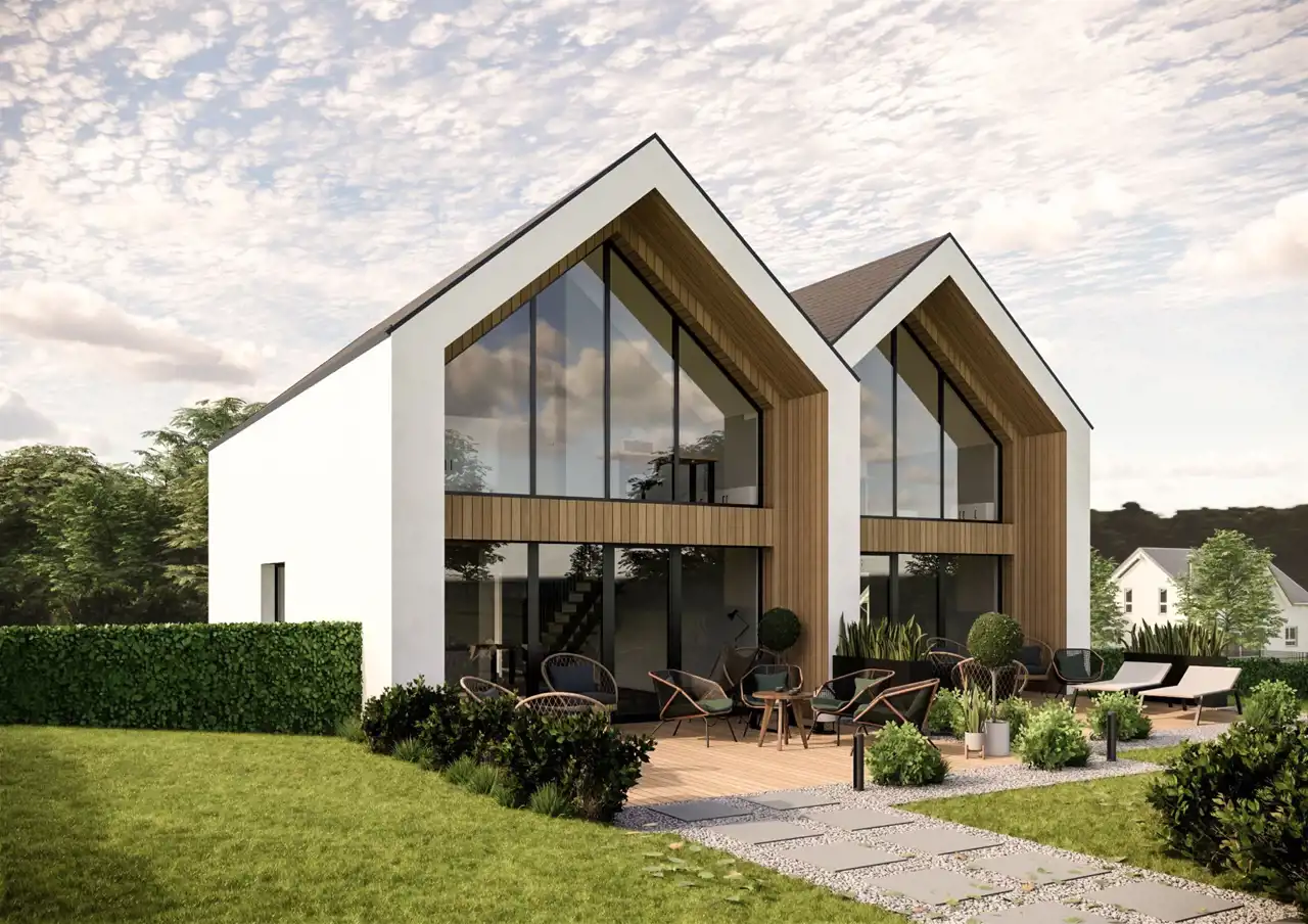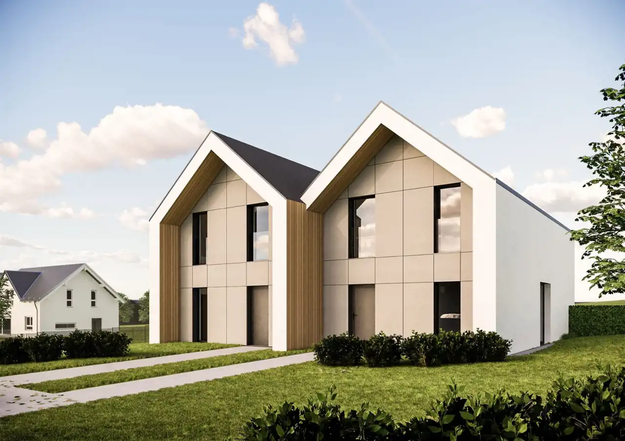 Działka jest płaska i ma wymiary 25 metrów szerokości na około 70 metrów długości. Przedstawione pozwolenie na budowę pozwala Ci na wybudowanie budynku o powierzchni użytkowej 186,5 m2, po 93,25 m2 na każdy lokal.