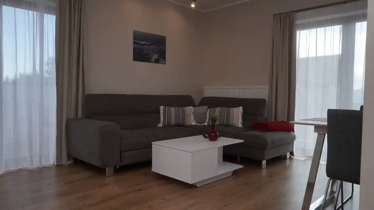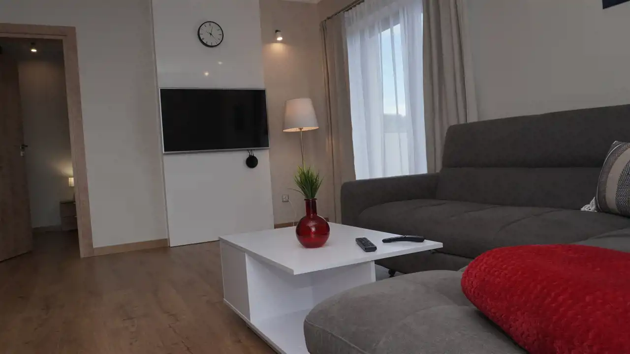 Przestronny apartament położony na 2 piętrze w nowoczesnym budynku z widną.
