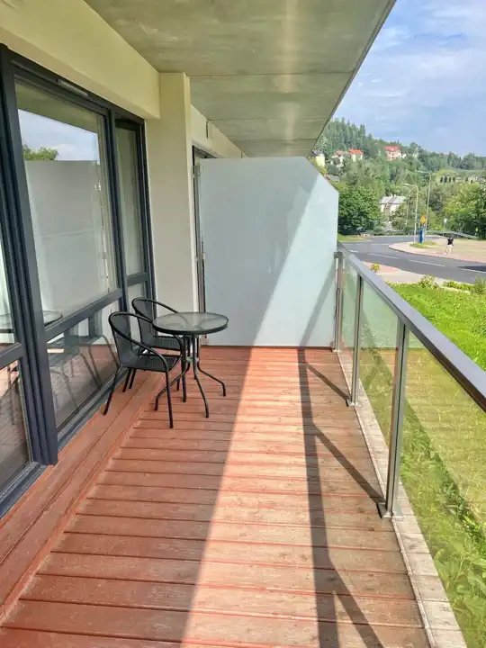 Z pokoju dziennego oraz sypialni wyjście na balkon.