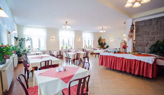 Budynki z 1900 roku, po kapitalnym remoncie w 2012 r. Łącznie 50 miejsc noclegowych, w formie 2,3 i 4 osobowych pokoi, sala bankietowa, sala konferencyjna co najmniej 20 osób, bar, grill.