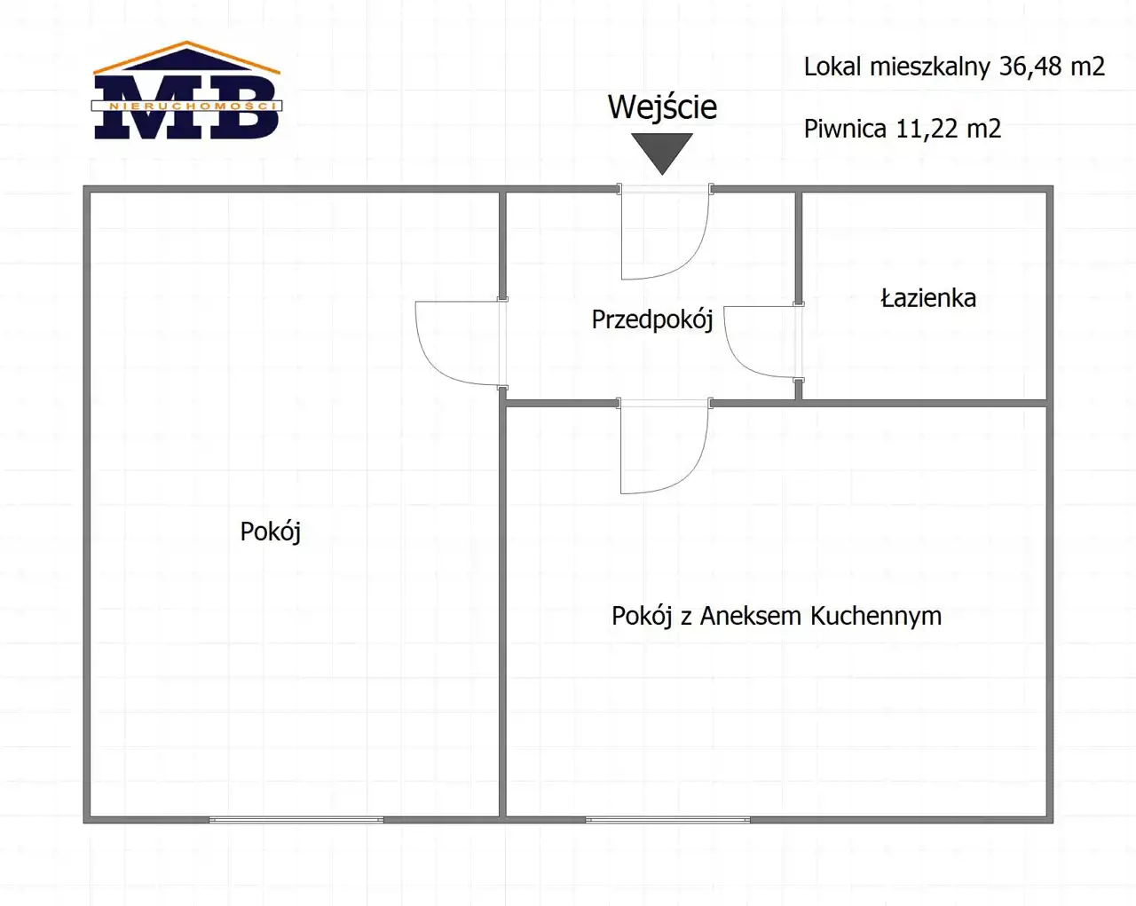 - Charakterystyka mieszkania 36.48 m2, 2 pokoje