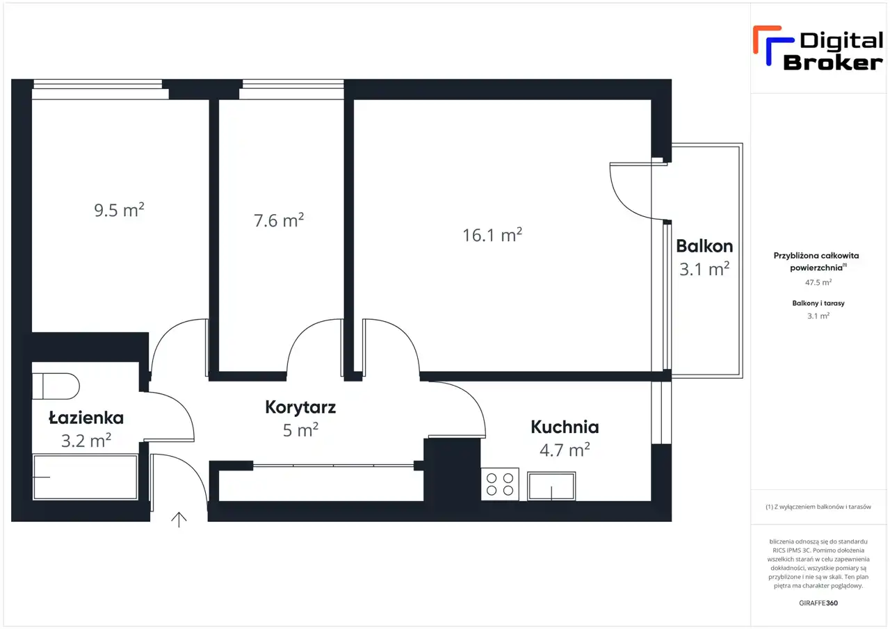 - Charakterystyka mieszkania 46.39 m2, 3 pokoje