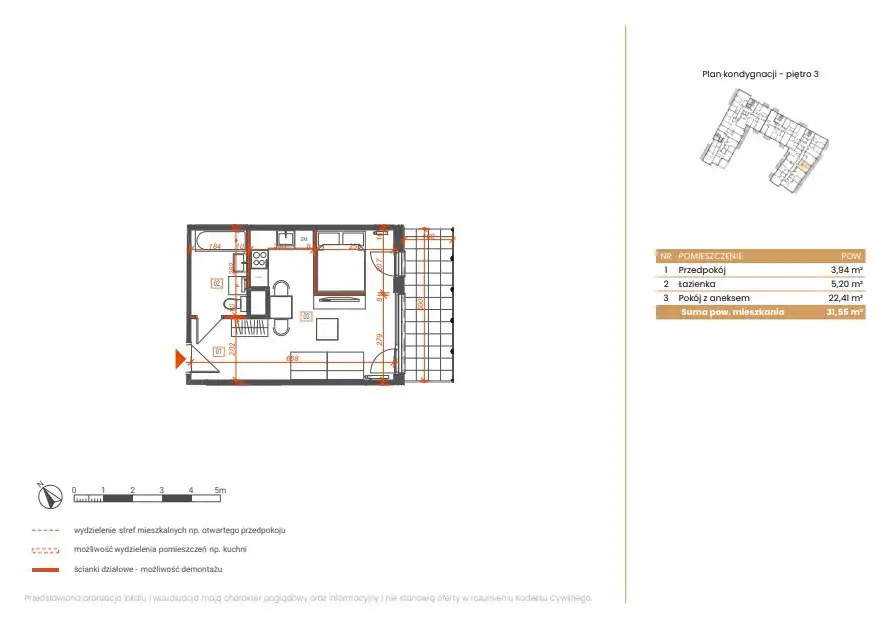 - Charakterystyka mieszkania 31.45 m2, 1 pokój