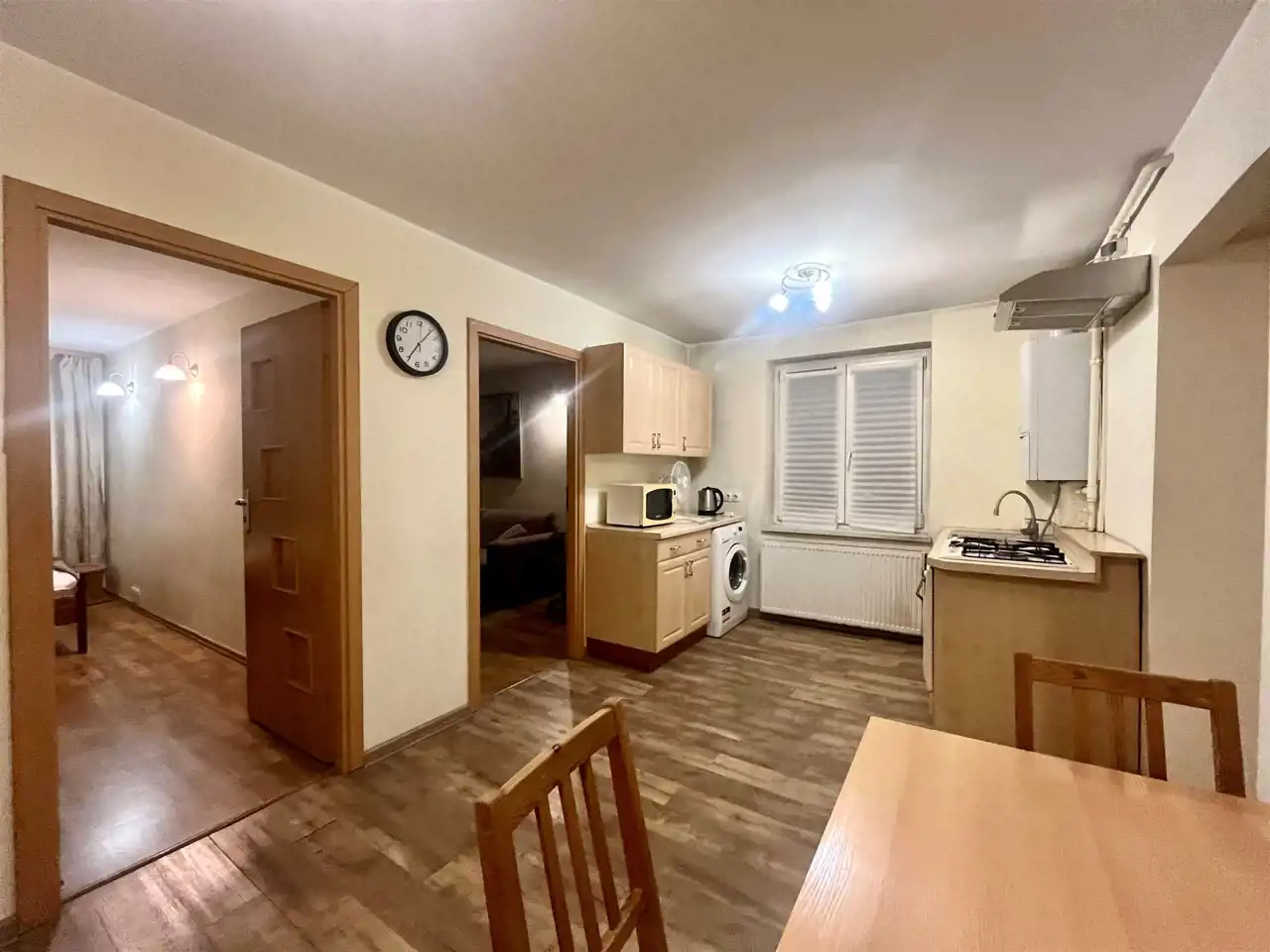 Mieszkanie składa się z 2 pokoi, salonu/jadalni z aneksem kuchennym, przedpokoju oraz łazienki z WC.