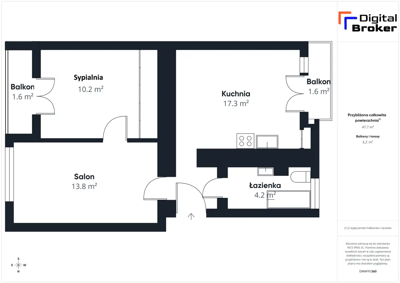 - Charakterystyka mieszkania 49.5 m2, 2 pokoje