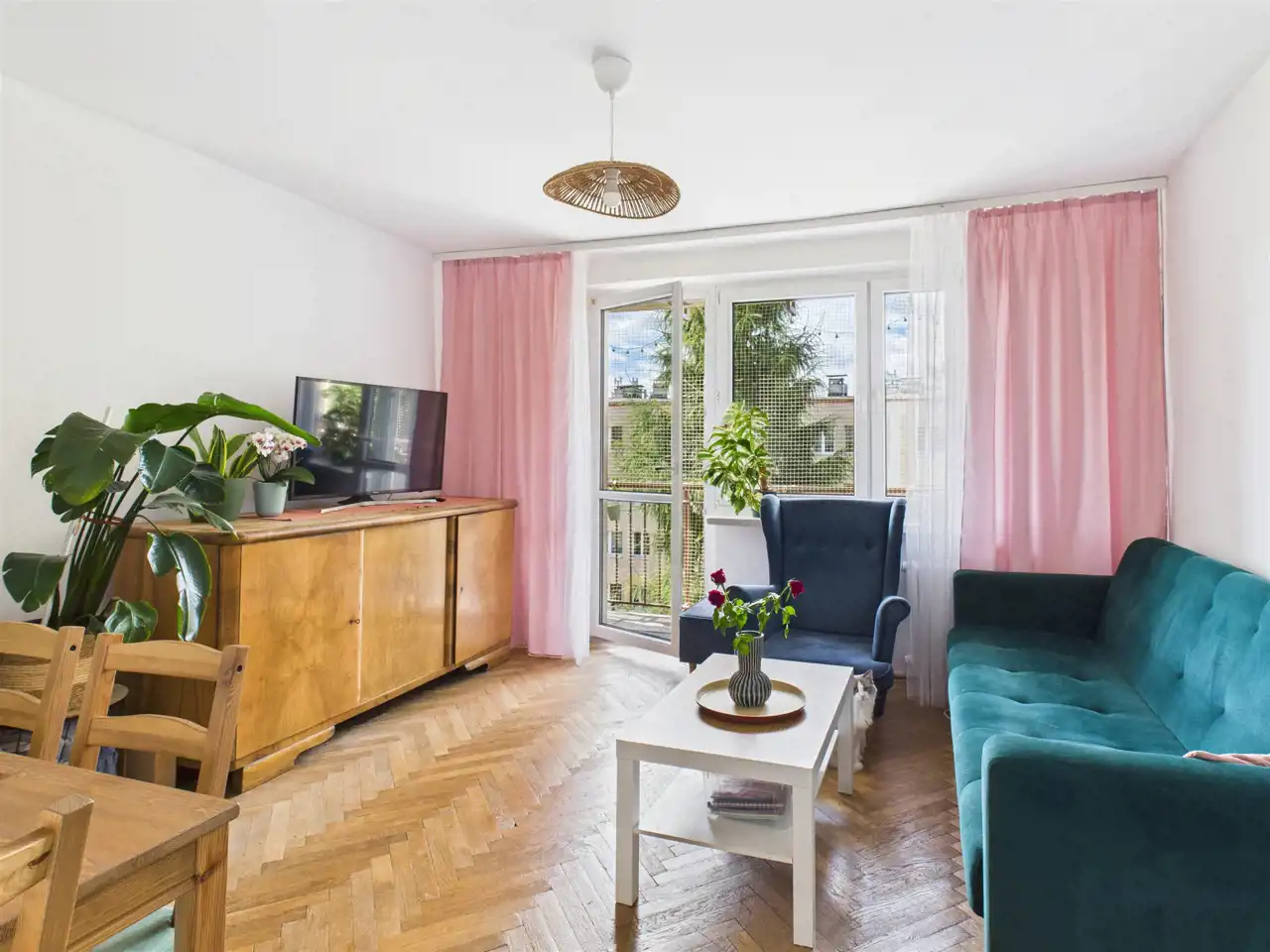 - Duży salon z wejściem na balkon