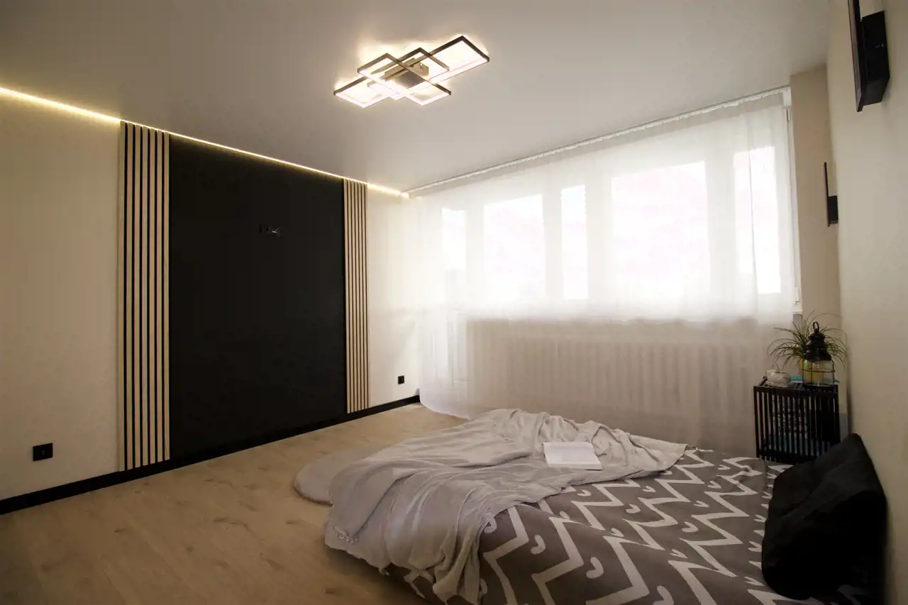 Pomieszczenia: 2 pokoje + salon z aneksem kuchennym