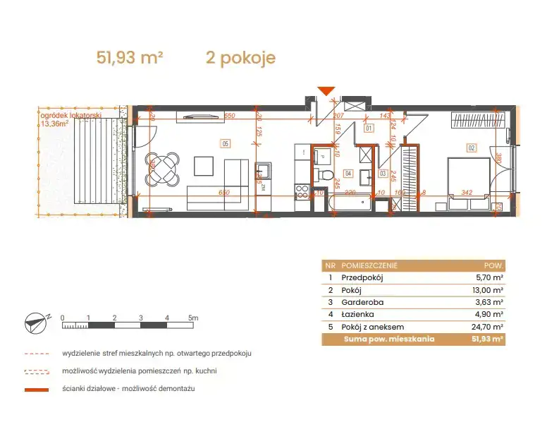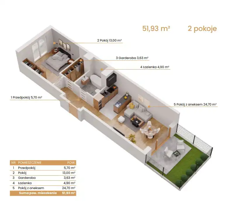 - Charakterystyka mieszkania 51.93 m2, 2 pokoje