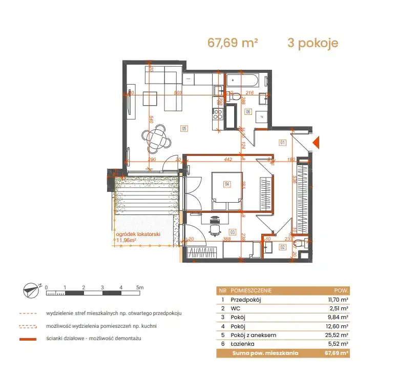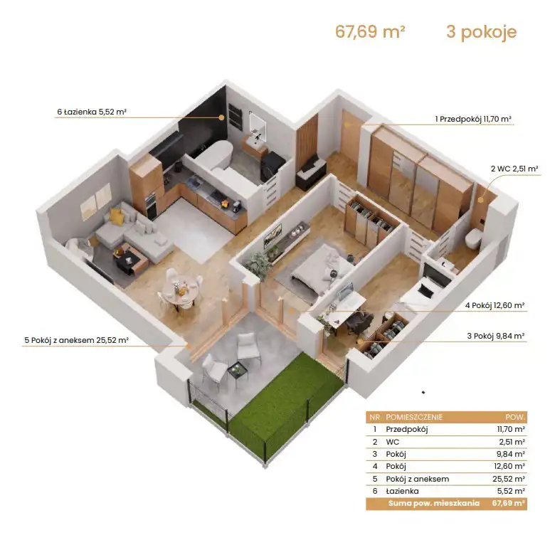 - Charakterystyka mieszkania 67.69 m2, 3 pokoje