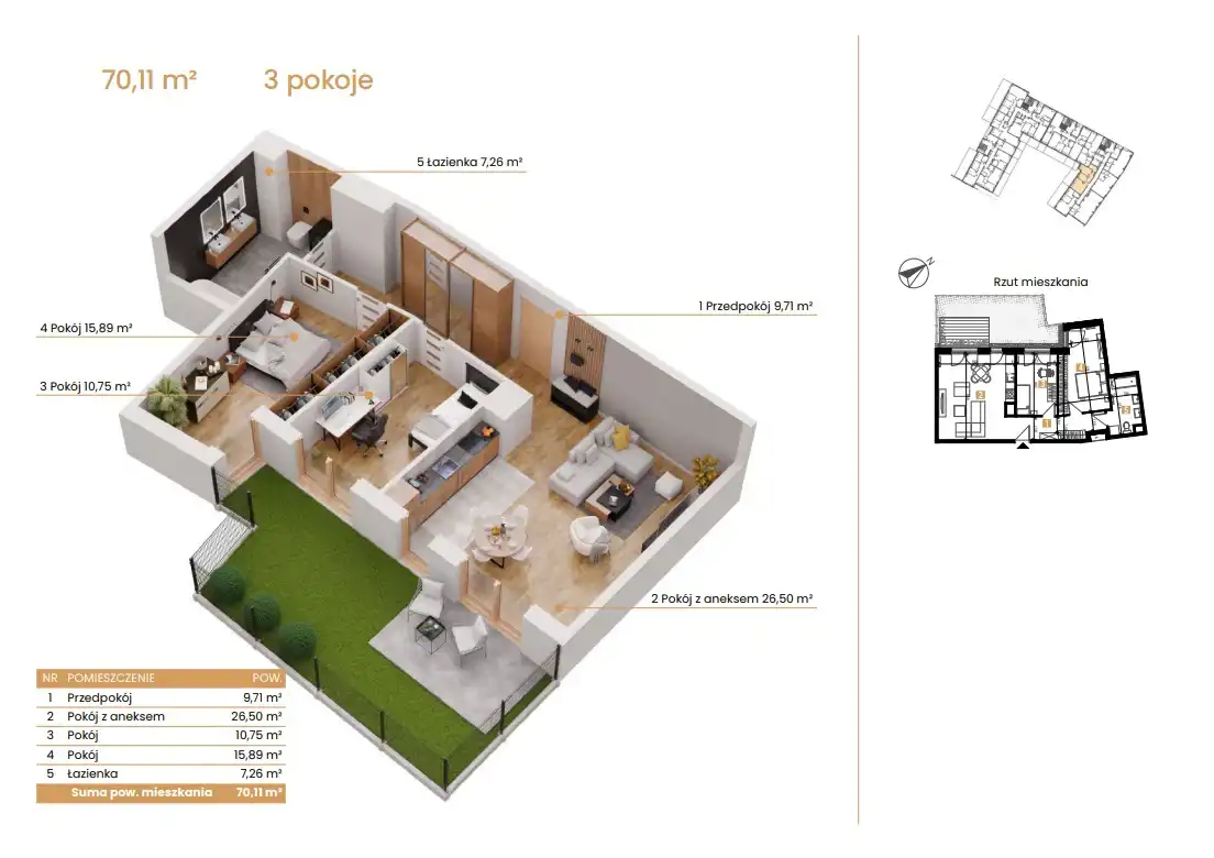 - Charakterystyka mieszkania 70.11 m2, 3 pokoje