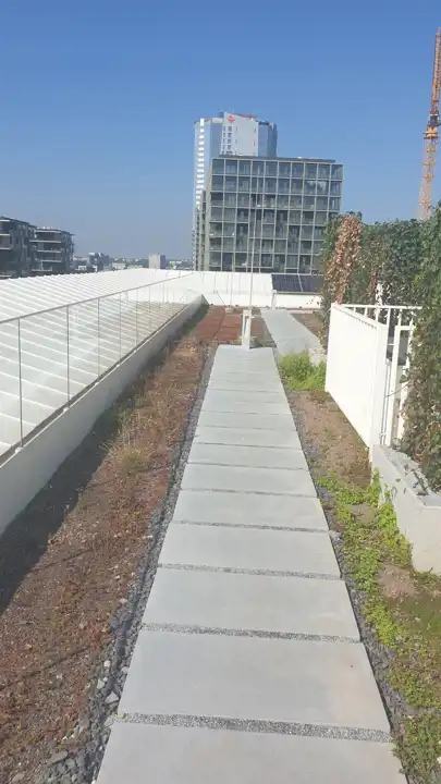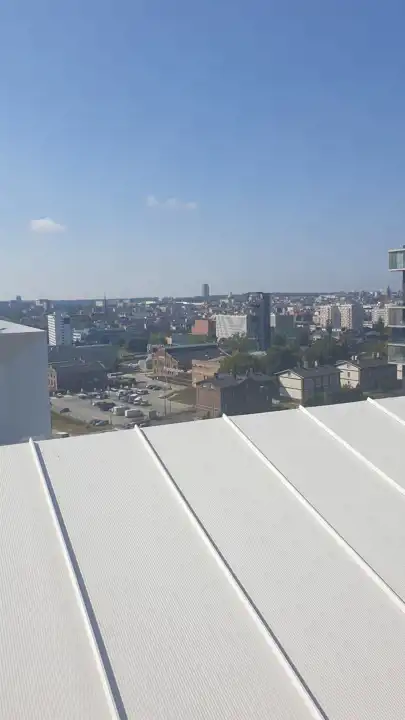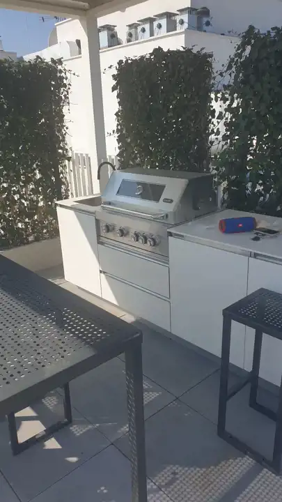 na dachu budynku grill z miejsce dla gości