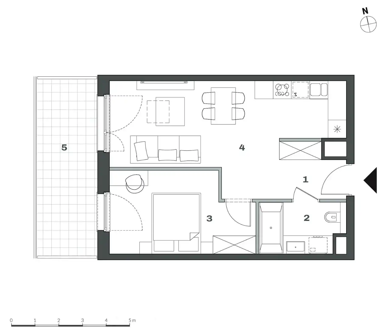 - Charakterystyka mieszkania 41.5 m2, 2 pokoje