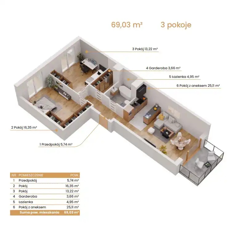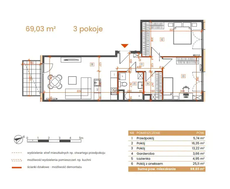 - Charakterystyka mieszkania 69.03 m2, 3 pokoje