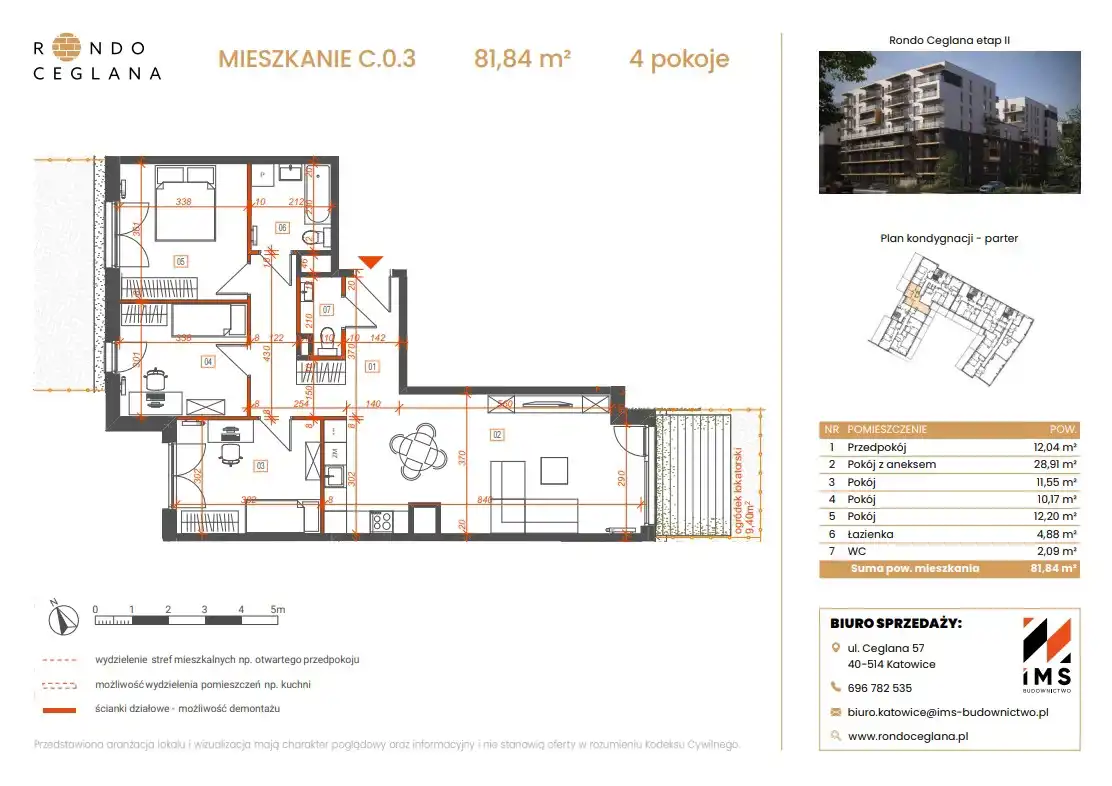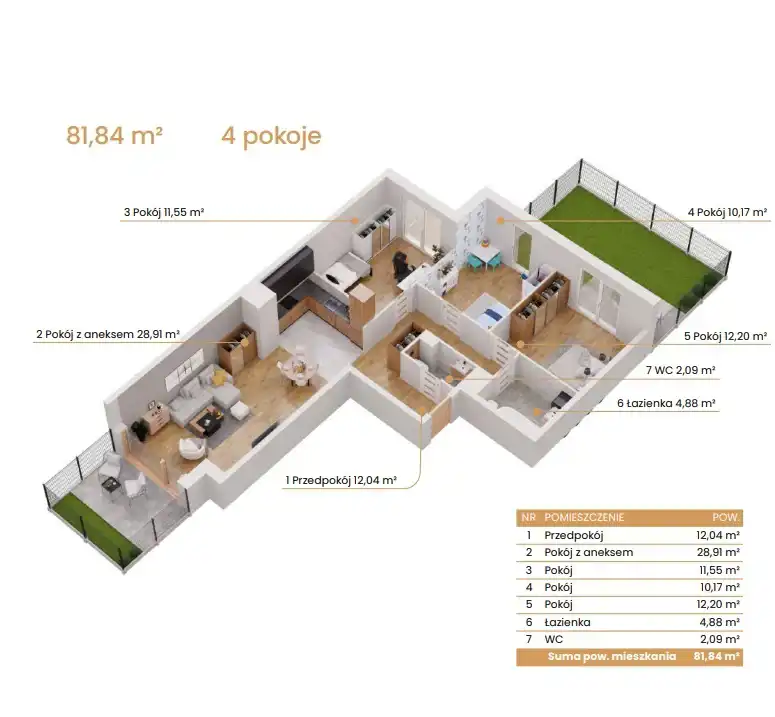 - Charakterystyka mieszkania 81.84 m2, 4 pokoje