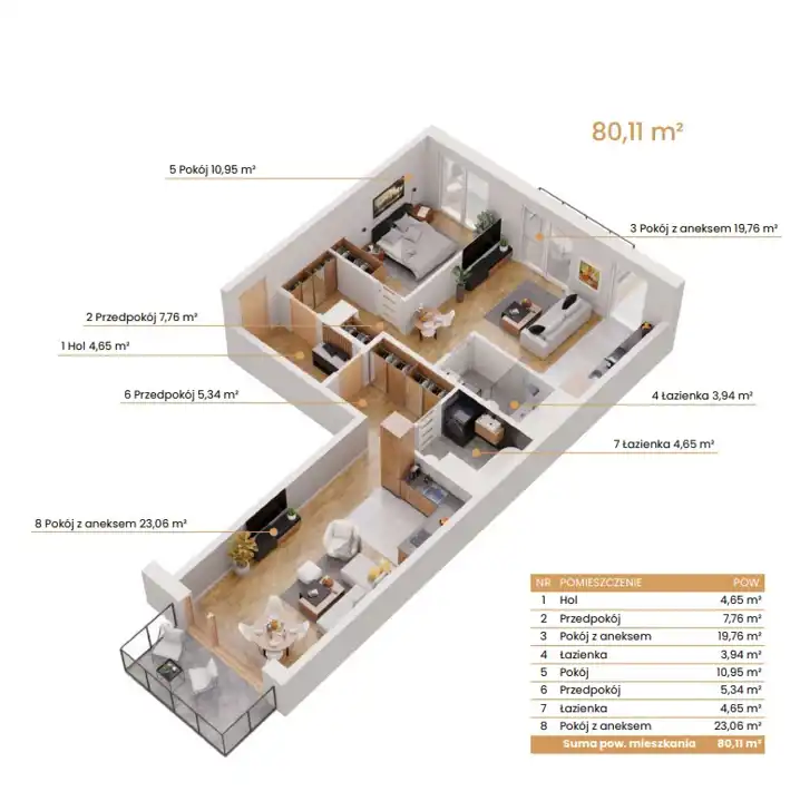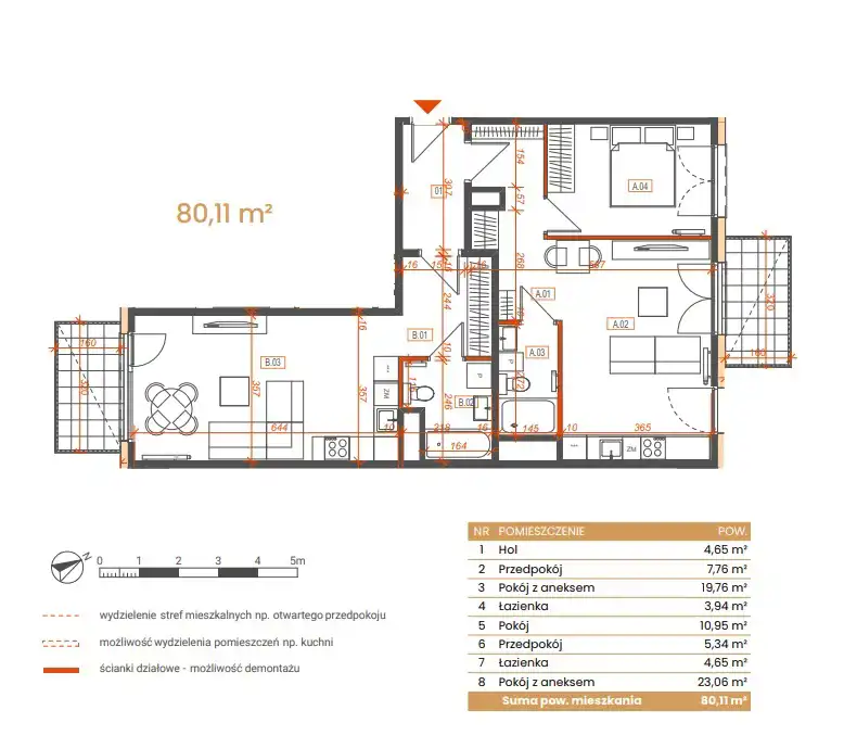 - Charakterystyka mieszkania 80.11 m2, 4 pokoje