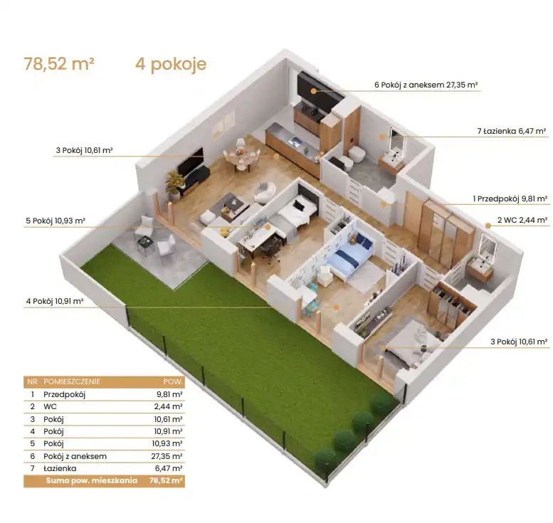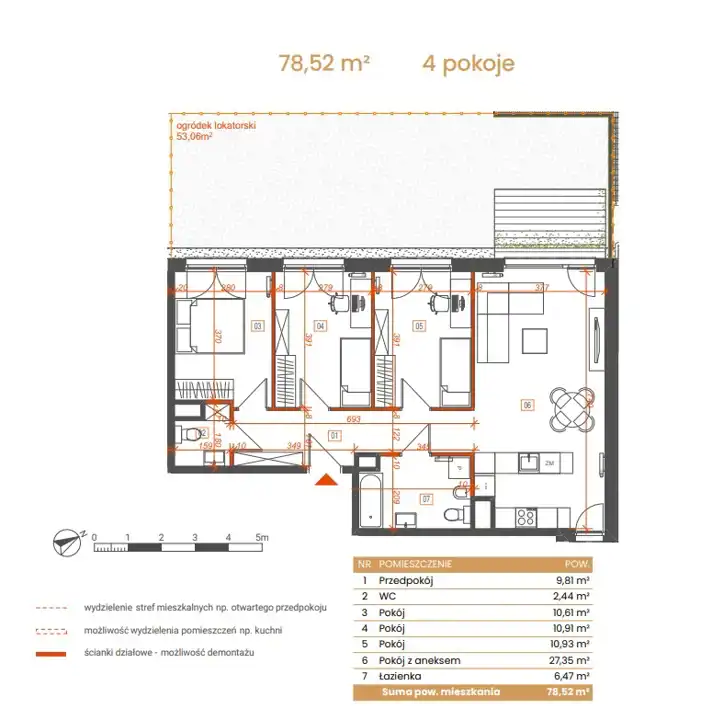 - Charakterystyka mieszkania 78.52 m2, 4 pokoje