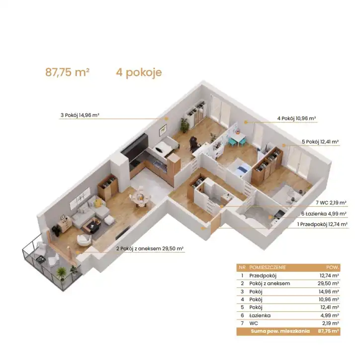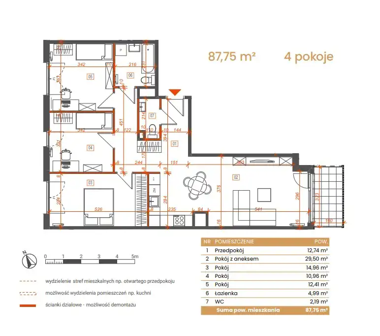 - Charakterystyka mieszkania 87.75 m2, 4 pokoje