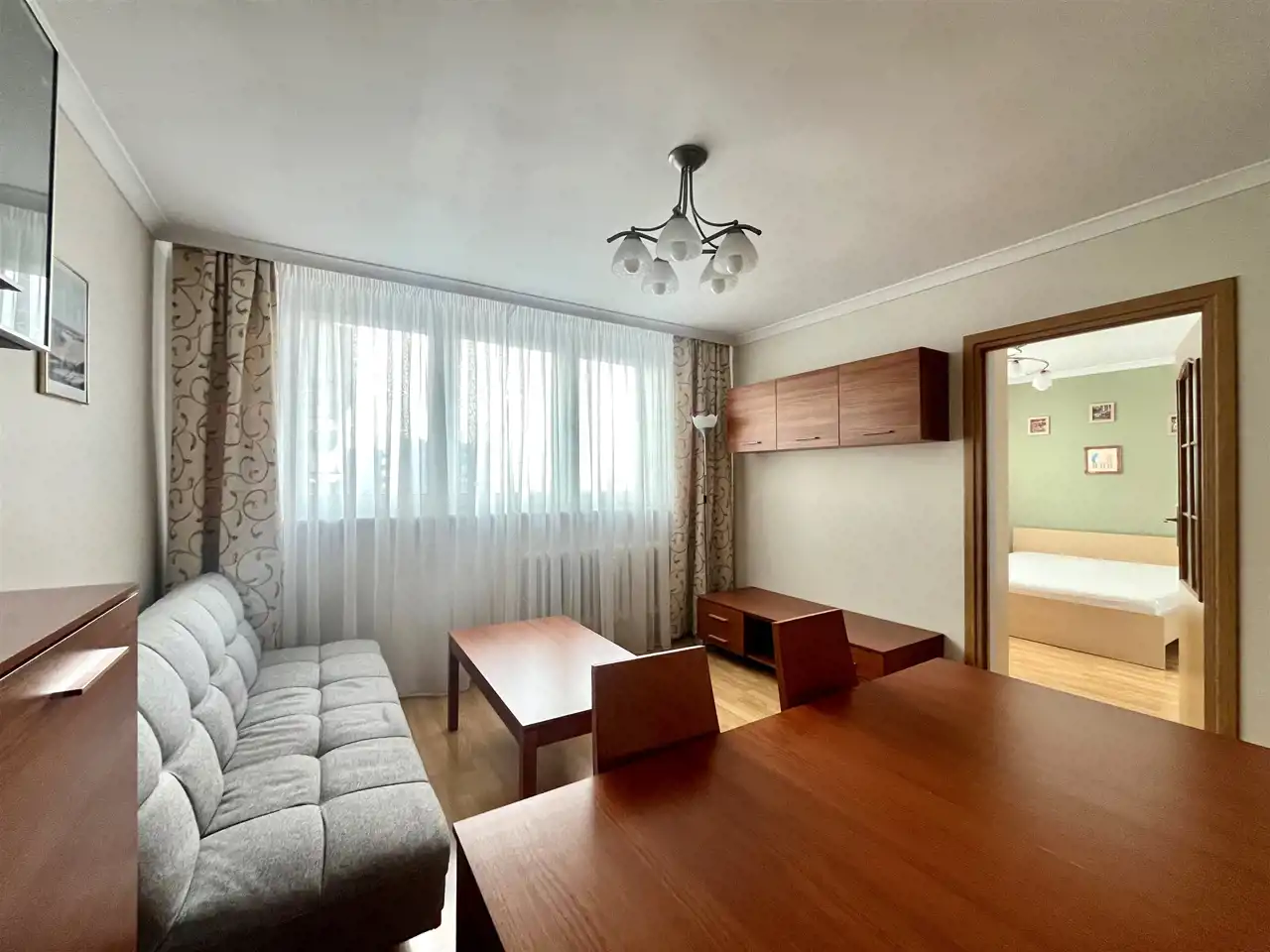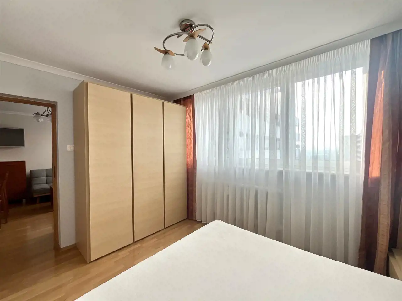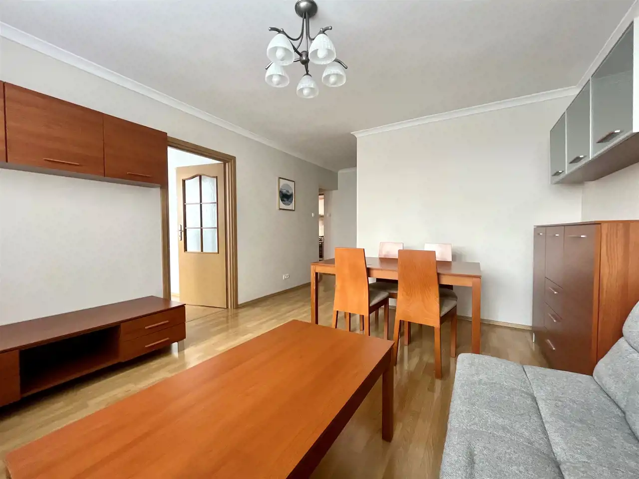 Mieszkanie jest w pełni umeblowane i wyposażone gotowe do wprowadzenia. Składa się z trzech pokoi, przestronnej kuchni, łazienki z WC, komórki, przedpokoju oraz balkonu.