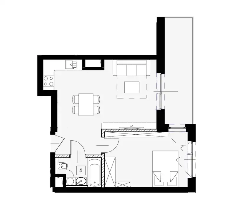 - Charakterystyka mieszkania 42.5 m2, 2 pokoje