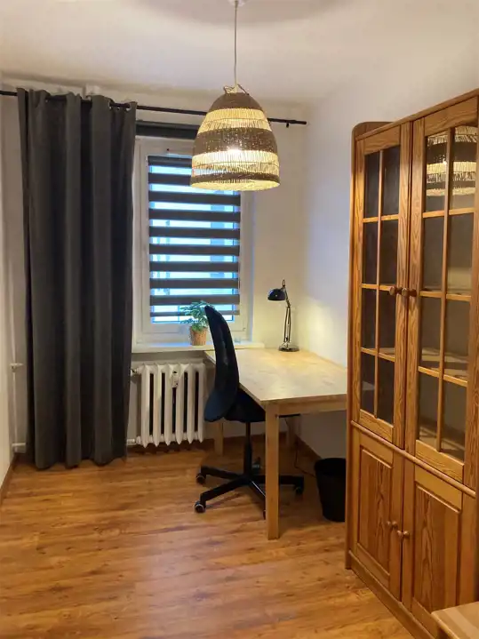 Składa się z 3 osobnych, umeblowanych pokoi, zabudowanej i wyposażonej kuchni (zmywarka, płyta indukcyjna, piekarnik, lodówka, mikrofalówka), łazienki z WC, przedpokoju oraz balkonu.