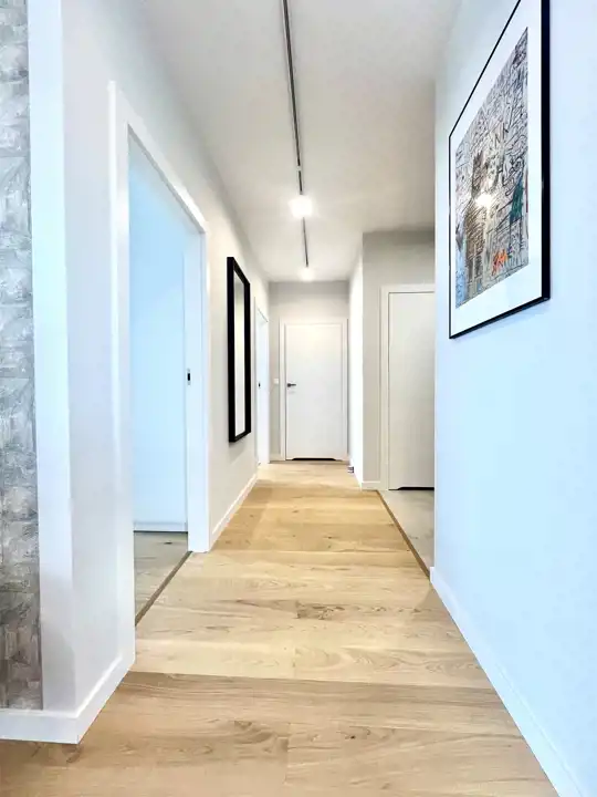 Składa się z salonu z aneksem kuchennym, sypialni, dodatkowego pokoju, garderoby, łazienki z WC, dodatkowego WC, przedpokoju, garderoby oraz dużego balkonu -logii o pow. ok 10m2.