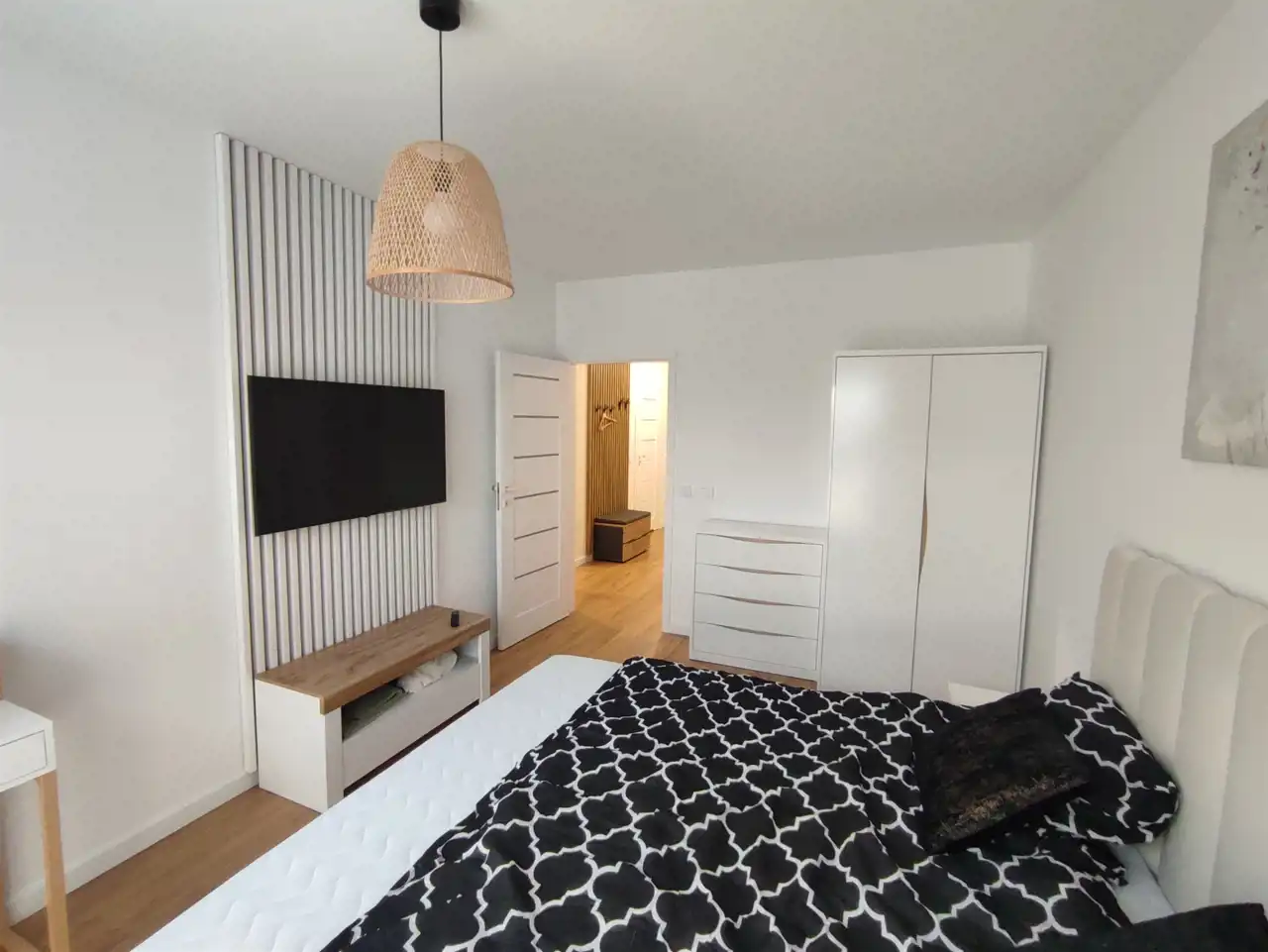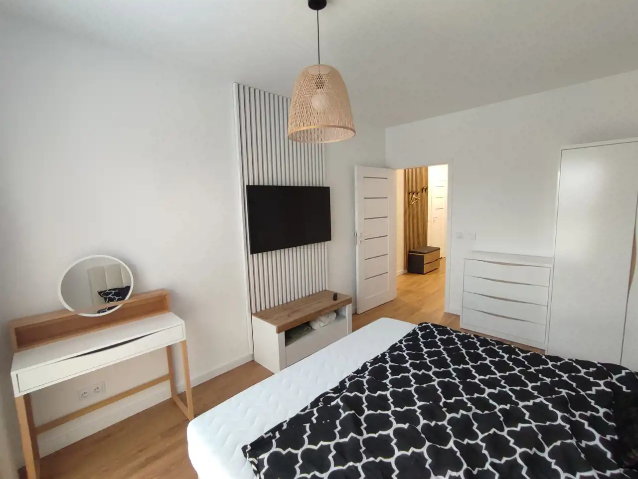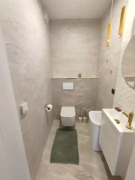 Mieszkanie jest w pełni umeblowane oraz wyposażone w sprzęt RTV i AGD. W kuchni znajduje się lodówka, kuchenka indukcyjna, piekarnik, w salonie i w sypialny telewizor z płaskim ekranem, natomiast w łazience dostępna jest pralka, co z pewnością ułatwi codzienne obowiązki.
