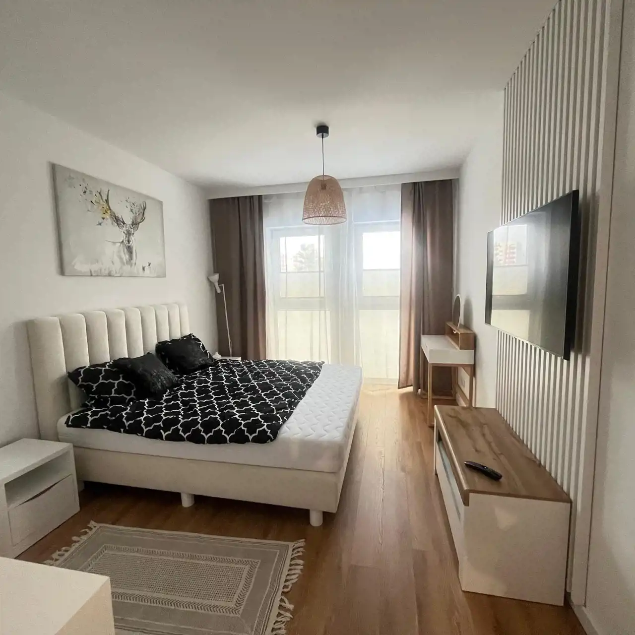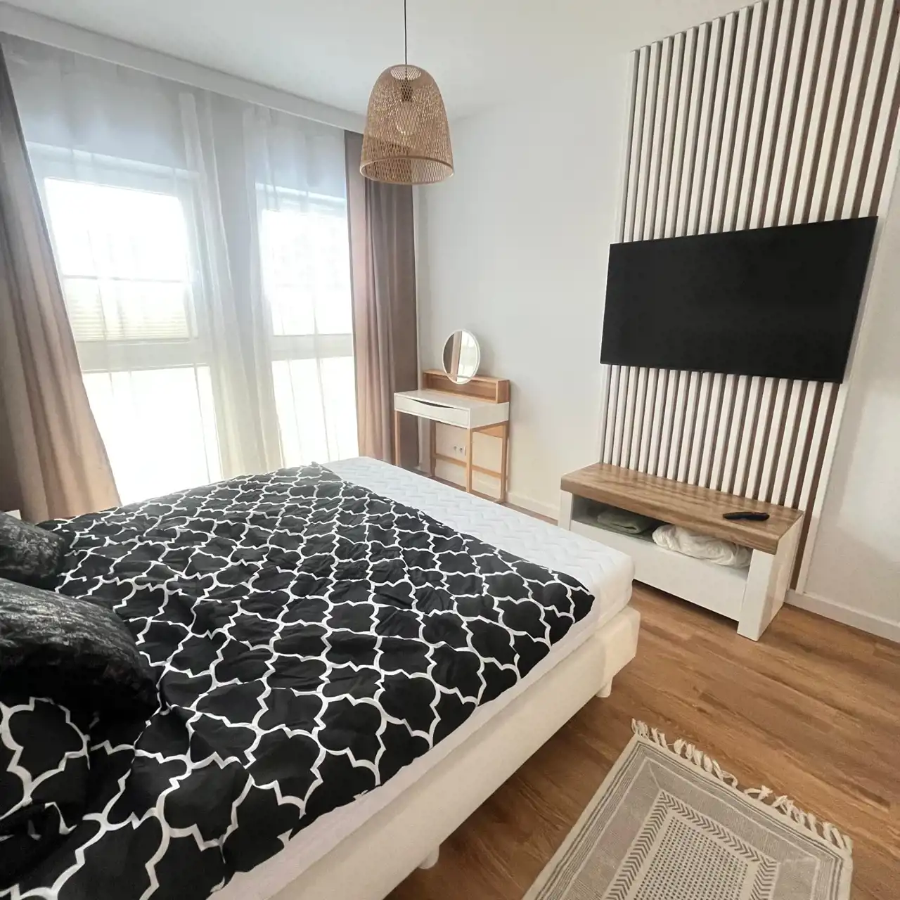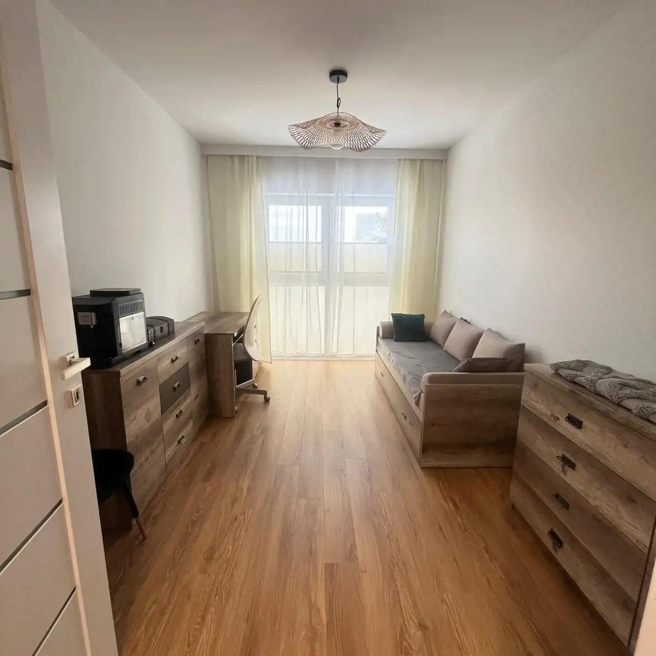 Mieszkanie jest w pełni umeblowane oraz wyposażone w sprzęt RTV i AGD. W kuchni znajduje się lodówka, kuchenka indukcyjna, piekarnik, w salonie i w sypialny telewizor z płaskim ekranem, natomiast w łazience dostępna jest pralka, co z pewnością ułatwi codzienne obowiązki.
