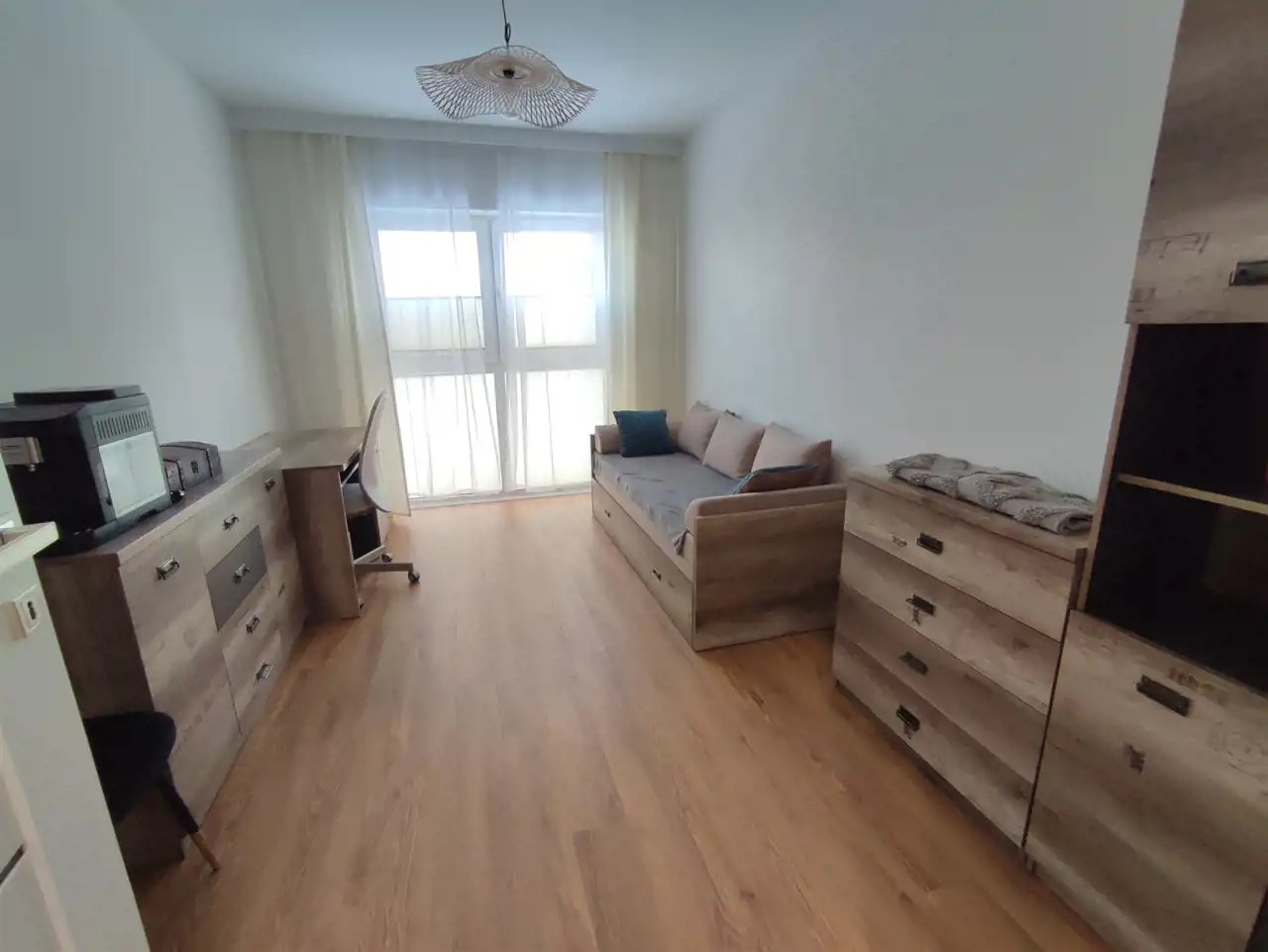 - przestronnego pokoju dziennego z wyjściem na taras (6,48 m2) z widokiem na panoramę miasta, tereny zielone i ogródki działkowe,