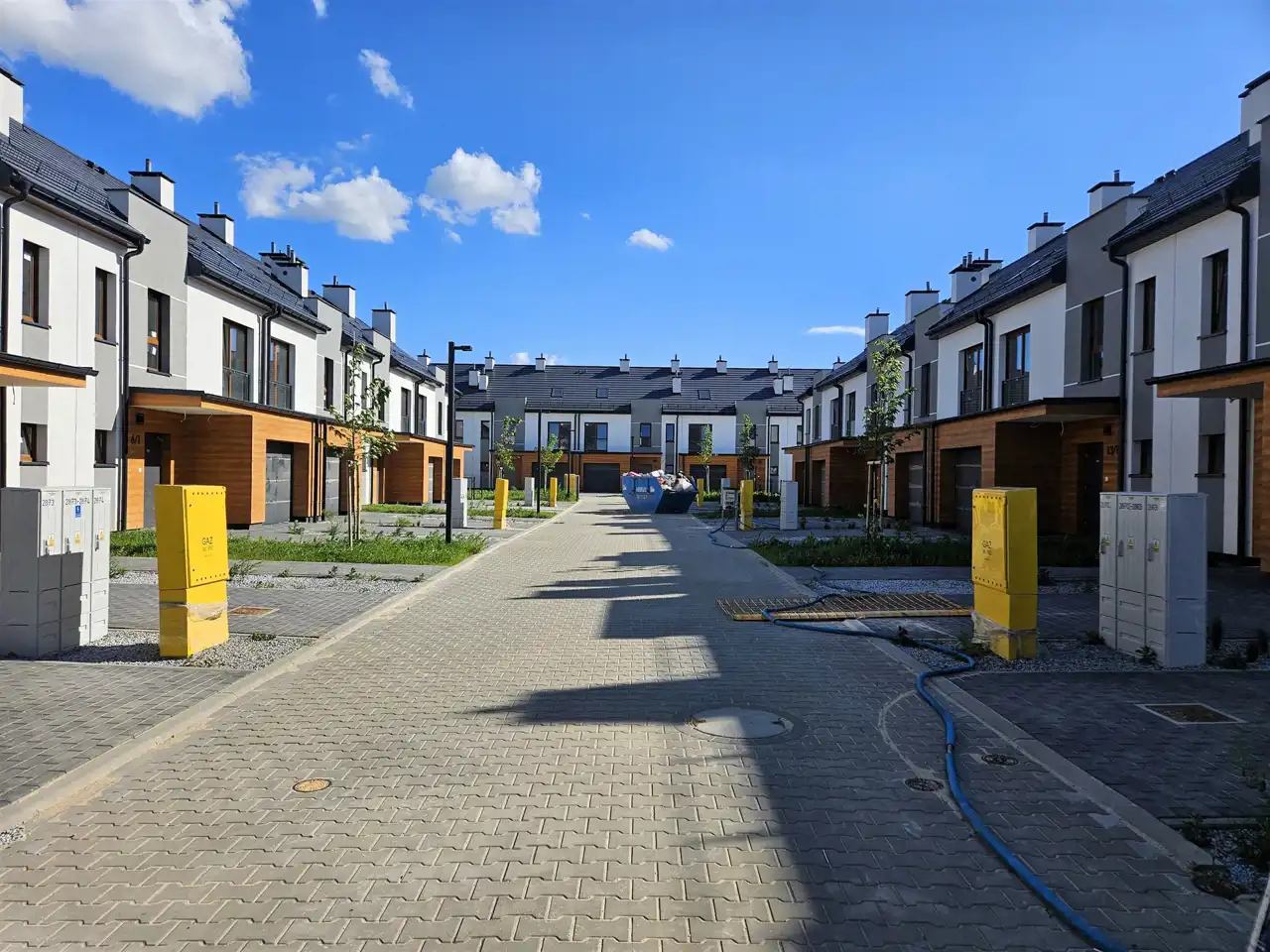 Inwestycję tworzą funkcjonalne budynki w zabudowie szeregowej kryte dachówką i wykończone eleganckim tynkiem cienkowarstwowym. W każdym domu na parterze znajduje się ogrzewanie podłogowe. Domy są w stanie deweloperskim.