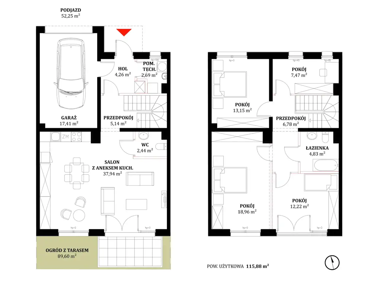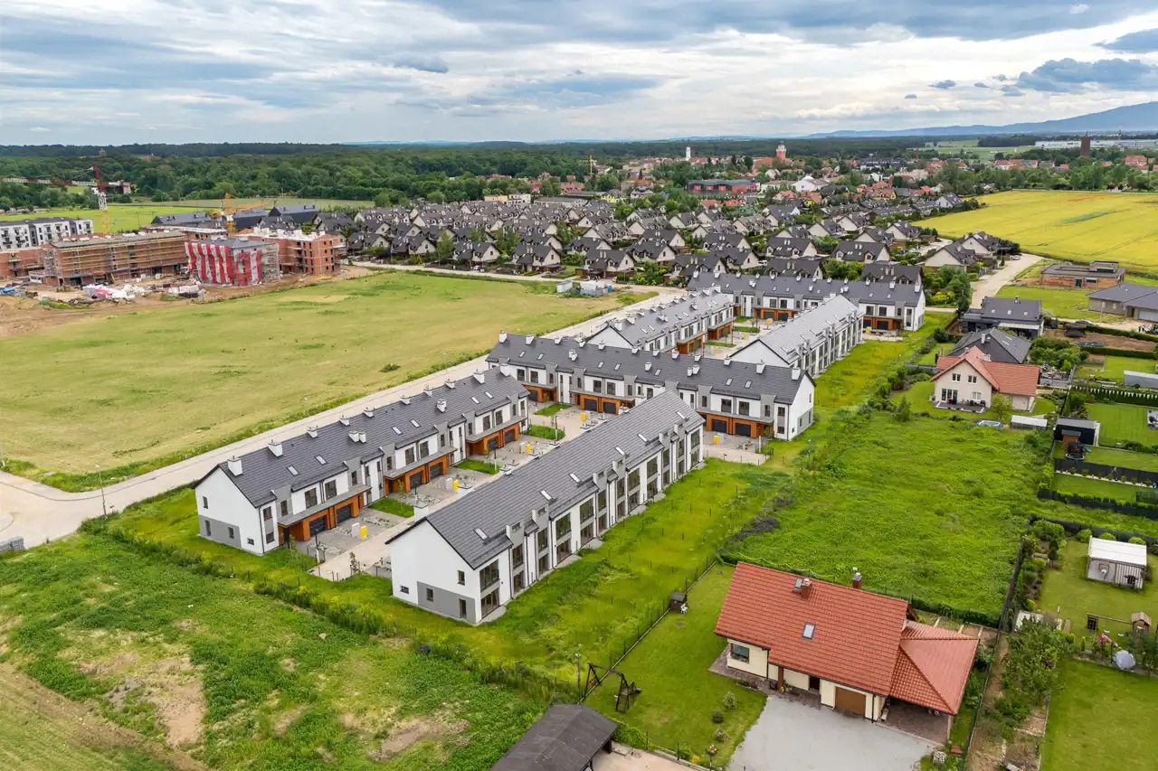 Inwestycja ta idealnie nadaje się dla osób, które marzą o przestronnym, nowoczesnym domu w spokojnej okolicy, ale z szybkim dostępem do miasta i pełną infrastrukturą w okolicy domu.