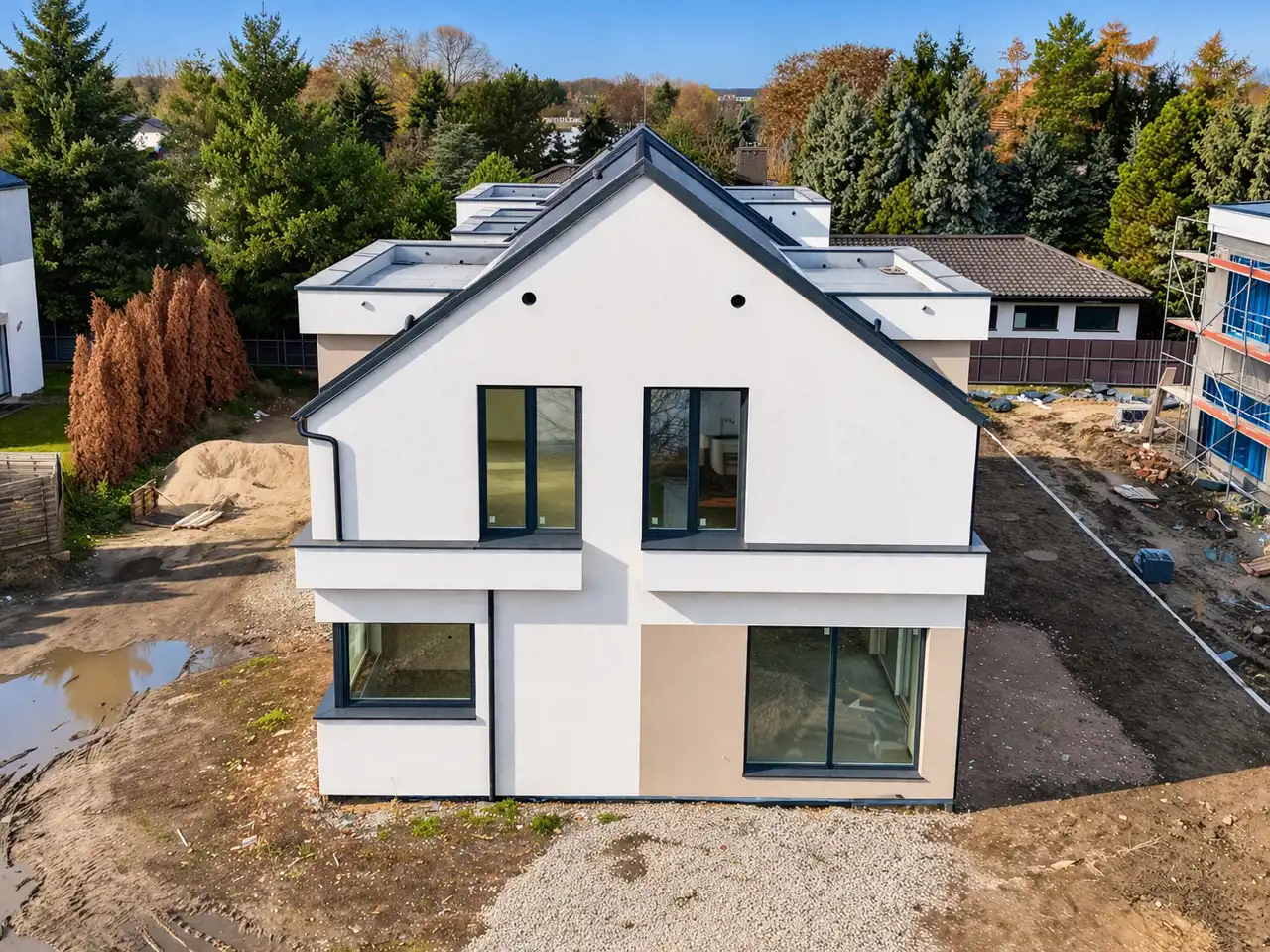 To projekt tworzony od podstaw z myślą o osobach, które oczekują czegoś więcej niż standardowy dom deweloperski – nowoczesne bryły, ogromne przeszklenia, starannie zaprojektowana zieleń oraz kameralne, prywatne ogrody tworzą osiedle, jakiego dotąd w tej okolicy nie było.