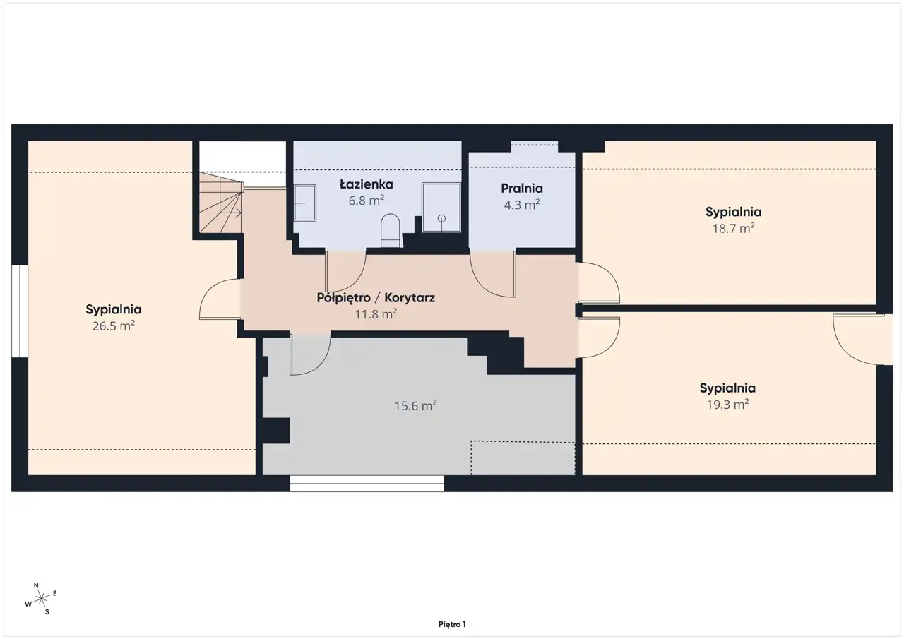 Układ idealnie odpowiada potrzebom rodzin z dziećmi — wygodny, funkcjonalny i pozwalający na świetną organizację przestrzeni.